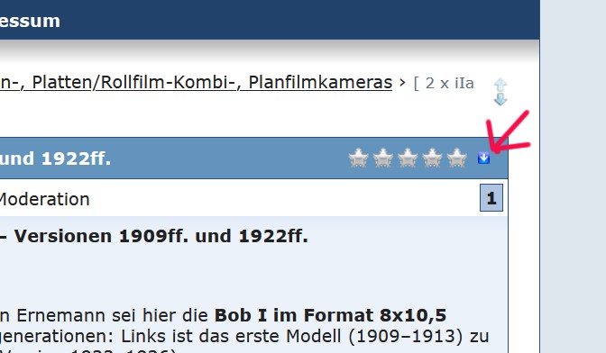 Hallo, ich schaue mir alle neuen Beiträge an, vor allem die Kameravorstellungen im Bereich historischer Platten- und Rollfilmkameras. Ich habe nur oft keine Zeit oder Energie aktiv darauf zu reagieren. Gruss Sascha