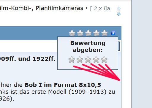 meine Intention zum Verfassen eines Threads dient einzig und allein, mein erlentes Wissen zu teilen, neue Erkenntnisse weiter zu geben, da ich ja auch von den anderen Nutzern gelernt habe. Sternchenvergabe als Dankeschön engt ein, macht gehemmt, ist irgendwie Daumen hoch oder -runter aus den Social Media. Ob ein Thread angenommen wird liegt doch an der Interessenlage eines einzelnen Nutzers. Wenn ein Nutzer amerikanische Kameras blöd findet - sei es drum - kann man mögen oder auch nicht. Damit kann ich leben.