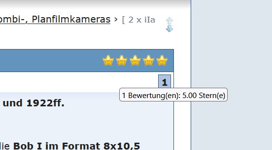 Diese Sternchen-"Bewertung" hat eine Eigenart: Hat nur ein Nutzer - sagen wir - 5 Sternchen vergeben, erscheinen diese auch so danach mit dem Beitragtitel als 5 Sterne. Kommen weitere Bewertungen hinzu, kann es sein, dass das zu weniger Sternen führt, wenn die weiteren Nutzer weniger als 5 Sterne vergeben haben (Durchschnittsbildung). Also wer einen Blick auf die Sternchen wirft (Maus über die Sternchen bringen ohne zu tasten) , sollte also die Zahl der Bewerter nicht aus den Augen verlieren.