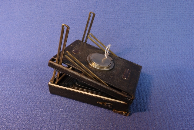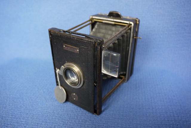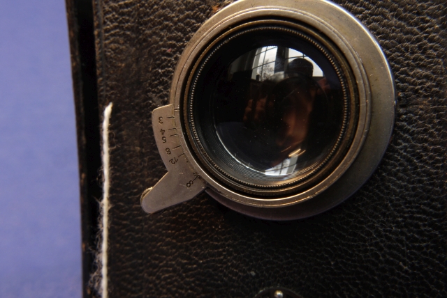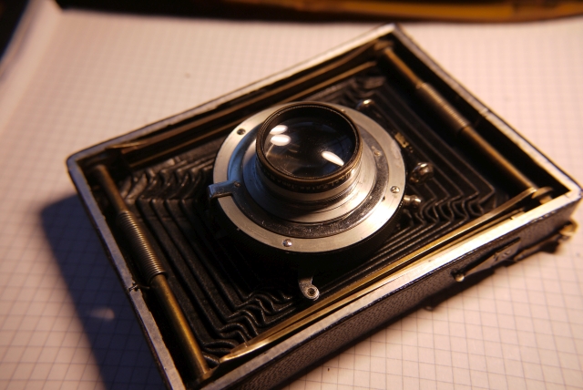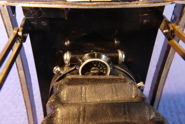 das ist ja ein bemerkenswertes Stück – vor allem die skurrile Lösung mit dem umgedrehten Compound! Immerhin liegen auf diese Weise die Bedienungselemente innen, wahrscheinlich wurde das beworben. Die Kamera scheint mir ähnlich flach konstruiert zu sein wie später die Patent-Etui oder Plan-Primar. Die Objektiv-Verschluss-Kombination verrät ja auch einen gewissen Anspruch.