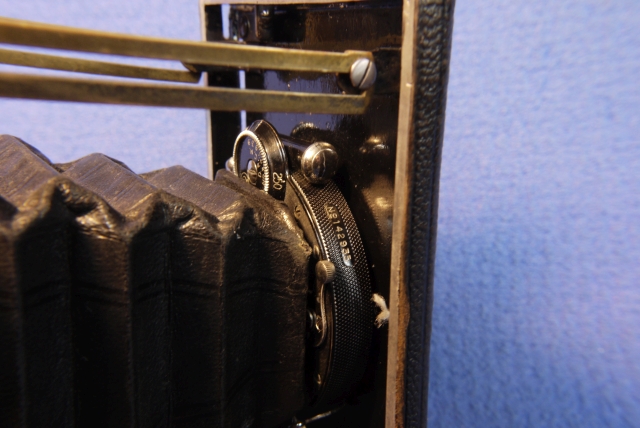 Ich besaß die gleiche Kamera vor vielen Jahren. Es war weder ein Herstelleretikett noch ein Name darauf zu finden. Das Objektiv und der Verschluss waren gleich, mit etwas höheren Seriennummern. Der Tessar Ic hatte die Seriennummer 190886 (1913 laut Thiele) und der Compound hatte die Seriennummer 180481. Das Kameragehäuse (ich glaube die Rückseite des vorderen Standards) war mit der Nummer 53 eingeprägt. Gibt es eine solche Nummer auf dieser Prinzess?