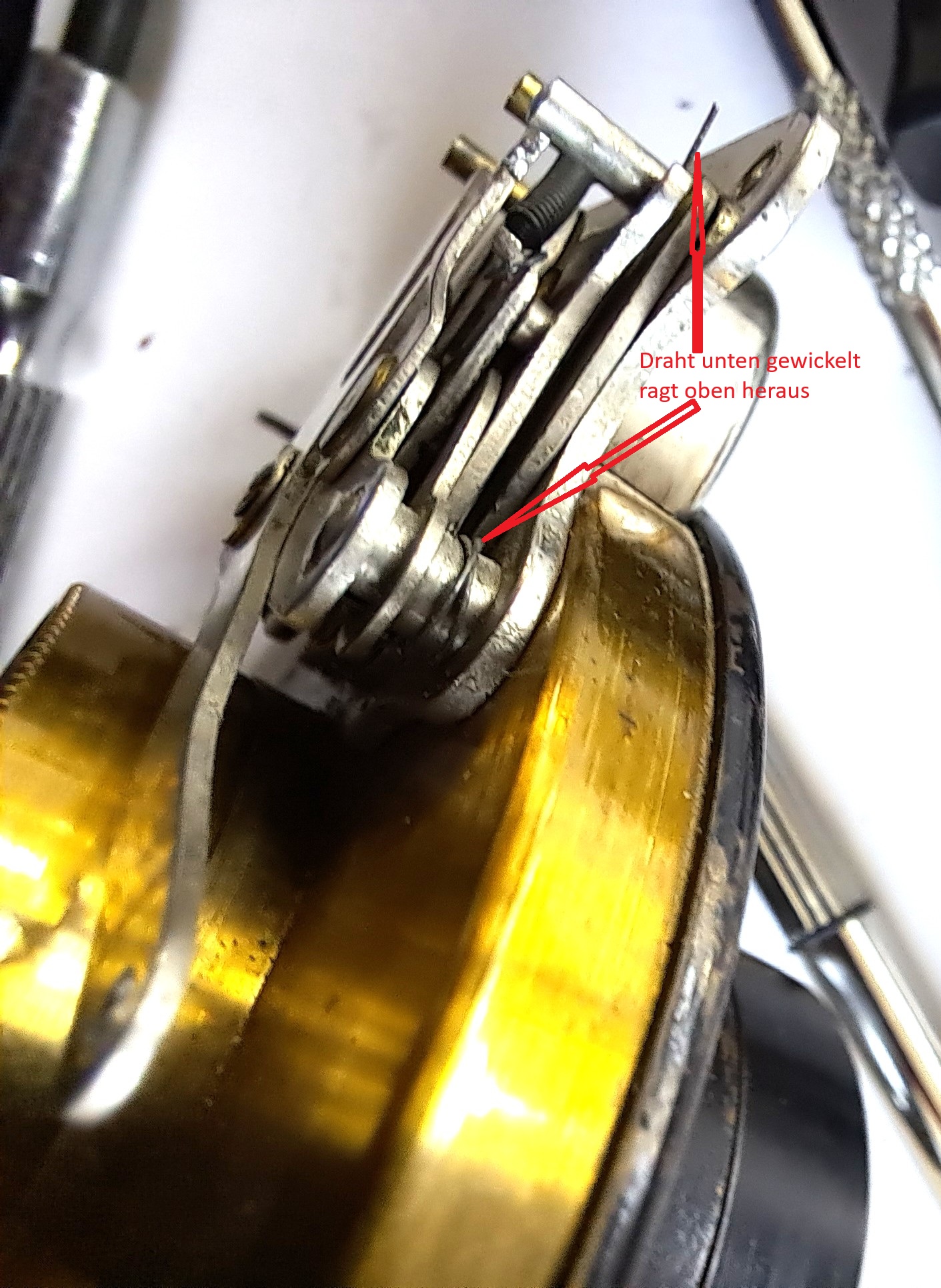 Ich habe die Zylinder wieder angeschraubt und es funktioniert nicht. Allerdings habe ich einen Draht gefunden, der unten 2xgewickelt oben herausragt.