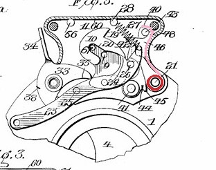 Der Draht läuft verdeckt hinter 21, kommt hinter 46 raus und bewegt den Hebel Kann es sein, dass der Verschluss erst funktioniert, wenn die Abdeckung wieder aufgeschraubt ist? Ich habe bei dem Unicum-Verschluss auch so einen Draht gefunden, der nur hochgeführt wurde.