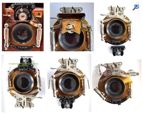 Ist dies die richtige Schraube, die ich lösen muss? Ist schon verrückt. Anfangs habe ich mich nur durch Anschauen an den Kameras erfreut. Mittlerweile möchte ich gern, dass sie auch - soweit es mir möglich ist - funktionieren. Und ich möchte auch mit ihnen fotografieren. Natürlich nicht mit allen, das würde von der Zeit auch gar nicht klappen. Nur mit den ganz alten um 1900 oder welchen mit besonderen Verschlüssen, z.B. Unicum-, Volute-Verschluss.