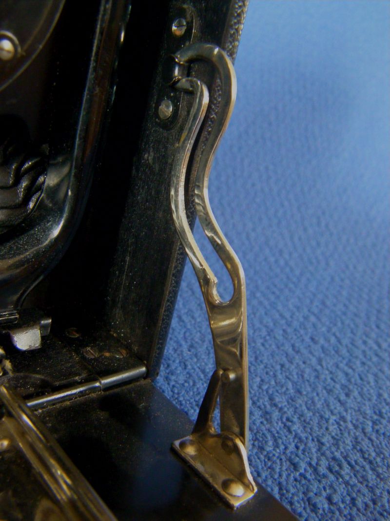 Freier-Sascha:Wie bei allen Bildern die ich von früheren Beier-Plattenkameras gesehen habe, hat auch Meine, zwei vermutlich Firmenspezifische Erkennungsmerkmale: 1.) In typischer Weise sehr stark S-förmig geformte, zierliche Spreizen und 2.) Spreizenfedern, die im 90 Grad Winkel nach oben zeigen.