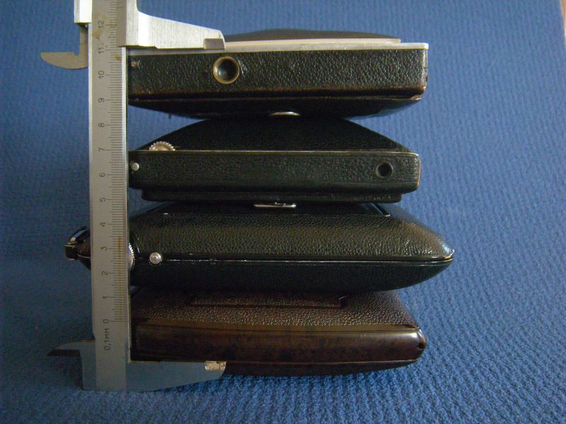 ich habe hier 4 Kameras, dessen Designer sich offensichtlich vom gleichen Ideal angezogen fühlten: Flache Klappkamers, mit abgerundeten Ecken und ohne hervorstehende Elemente: