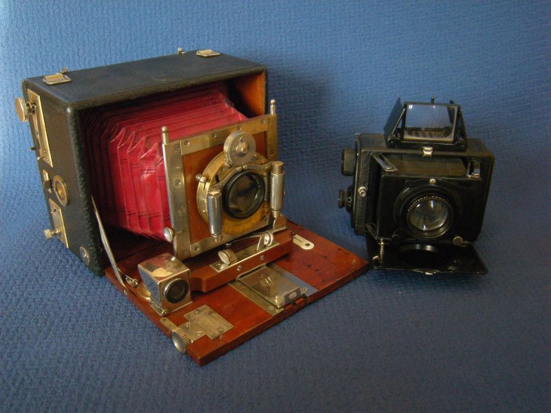 bei der ersten Kamera kann ich aushelfen: Das ist eindeutig eine Contessa No. 19, 4,5x6 Westentaschenkamera von 1911 (Angaben eben aus dem Verkaufskatalog von 1911). Die 2. Kamera gibt mir auch noch Rätsel auf und das ärgert mich... in sofern, als das ich seit Jahren dieses Thema studiere, es viele Variationen dieser Kamera gibt (sie ist also relativ häufig) ich aber noch nicht zweifelsfrei den Hersteller ermitteln konnte!