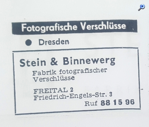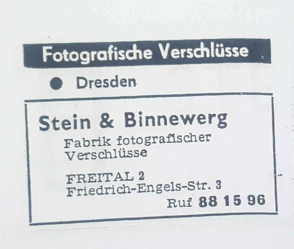 1908 im gleichen Jahre konnte er einen eigenen Betrien gründen und beschäftigte sich mit dem Bau fotografischer Spezialartikel, wie er selbst annoncierte. Er baut Selbstauslöser, Jalousie Verschlüsse die damals auf das Objektiv aufgesetzt wurden............ Mit dem "Triumph-Lalousie-Verschluß" ........ erhielt er 1909..... eine Silbermedaille.