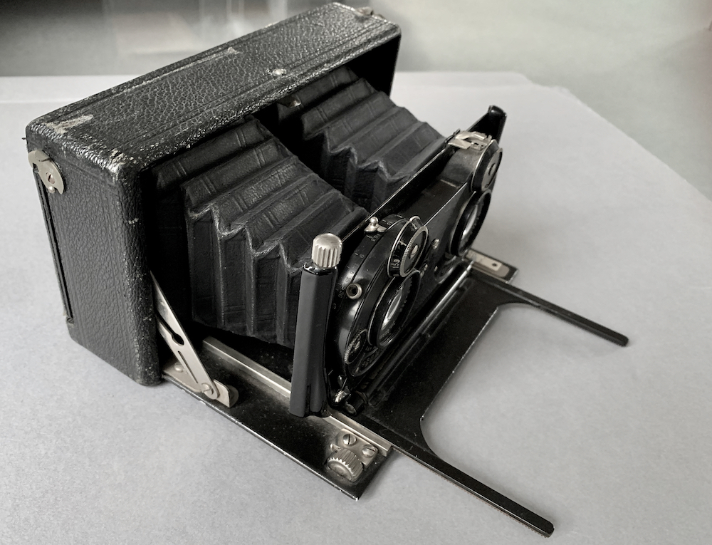 Hallo Zusammen, da habt Ihr Euch aber sehr viel Arbeit gemacht, ich bin sehr beeindruckt und habe direkt eine Frage: Ich habe eine Klapp- Laufboden-Stereo-Kamera 6 x 13 cm in Holzbauart mit Metallboden und Schraubauszug, bei der in keinster Weise auf einen Hersteller zu schließen ist. Der Stereo-Verschluss 1 -150 ist von Compur, die Objektive sind Schneider Xenar. Ich hänge hier mal Fotos an, vielleicht hat ja jemand eine Idee, wer die Kamera gebaut haben könnte.