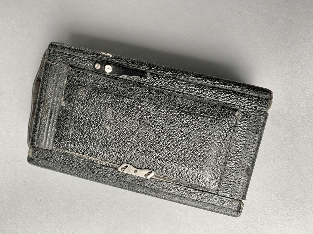 Bemerkenswert, dass das Modell keinen Zusatzsucher hat, also nur anscheinend die Mattscheibe und keine Tragehilfe. Auch der Laufboden ohne vorderen Quersteg ist ja vielleicht ein Erkennungsmerkmal ...