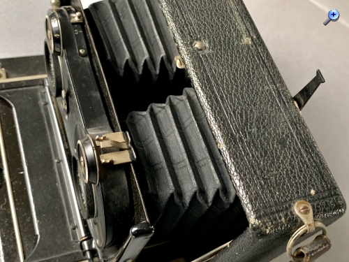 vielen Dank für Eure schnellen Reaktionen, ich habe hier nochmal Fotos, die zeigen, dass doch ein Zusatzsucher vorhanden war und davon nur noch die Halterung und das Visier vorhanden ist. Die Handhabung der Kamera ist recht gut, welche Griffe vermisst Du denn, Jan?, ein Leder-Tragegriff ist vorhanden.