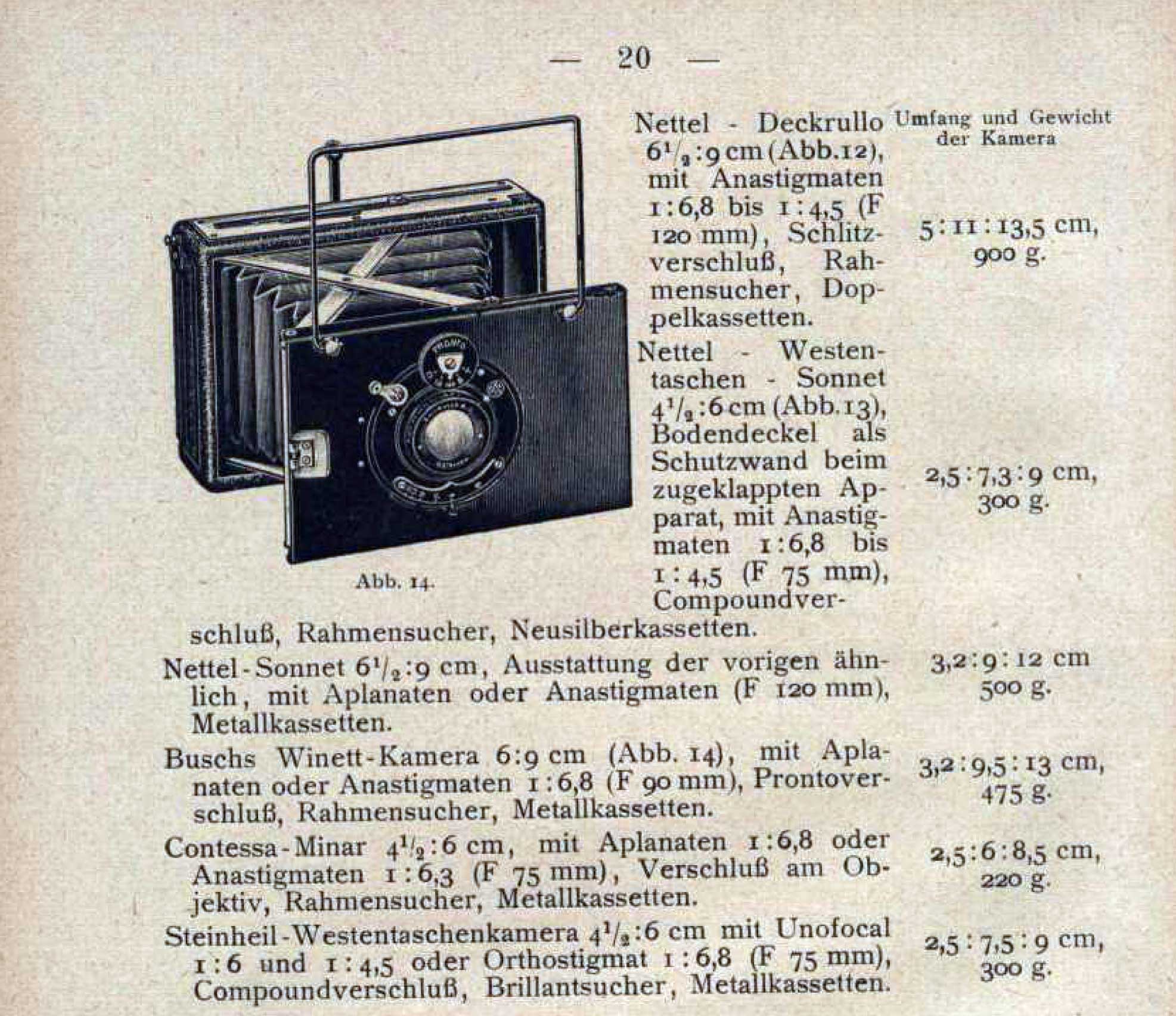 @ Axel: Die Abbildung ist aus Hanneke, oder? Interessant, dass dort offenbar in jeder Auflage andere Kameras abgebildet werden. Ich habe 1915 und 1928; jeweils andere Modelle...