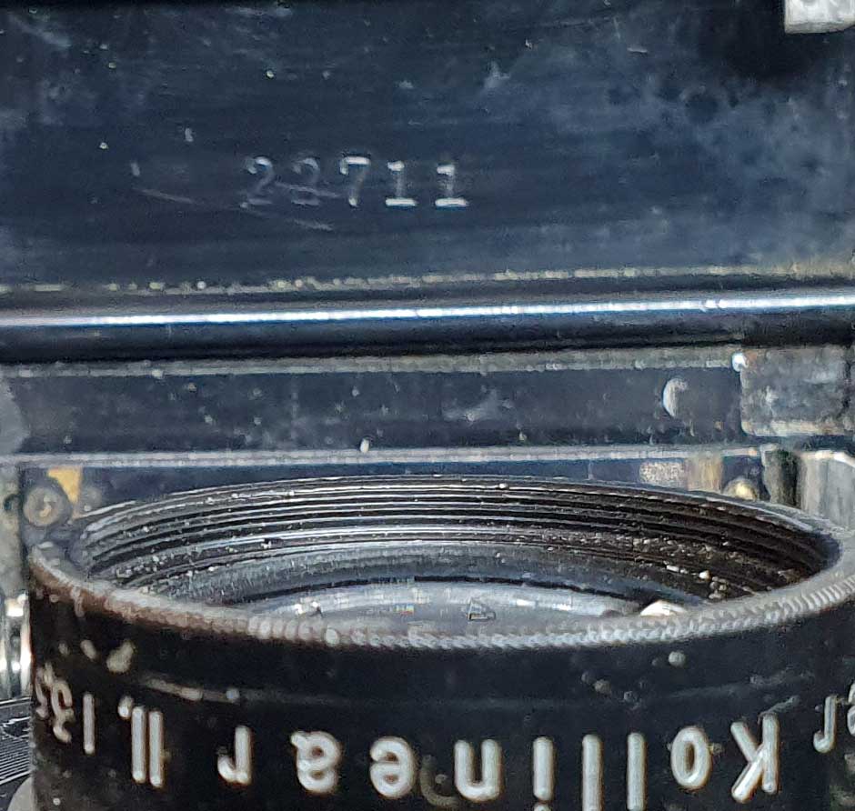 hier ein Hinweis zu den Seriennummern: Habe eine 'gut gebrauchte' Bergheil, die bereits mit den Balgenstreckern ausgestattet ist, aber noch über die einfache horizontale Verschiebung der Standarte verfügt und diese besitzt eine Seriennummer auf dem Laufboden. Bestückt ist die Kamera mit Kollinear II, 13,5 cm 1:5.4 im Compur.
