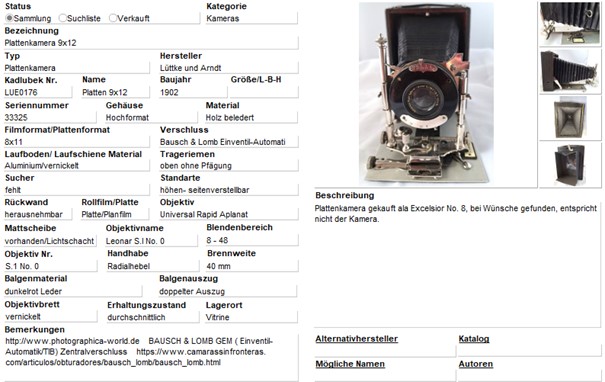 Hier der Beweis: Deine Kamera (mit anderem Verschluss = Bausch & Lomb 3-Zeiten-Verschluss mit Auslösezylinder oben und anderem Objektiv = Extra Rapid Aplanat), auf dem 2 Bild sieht man noch das "P" von "Tip" auf der weissen Plakette: