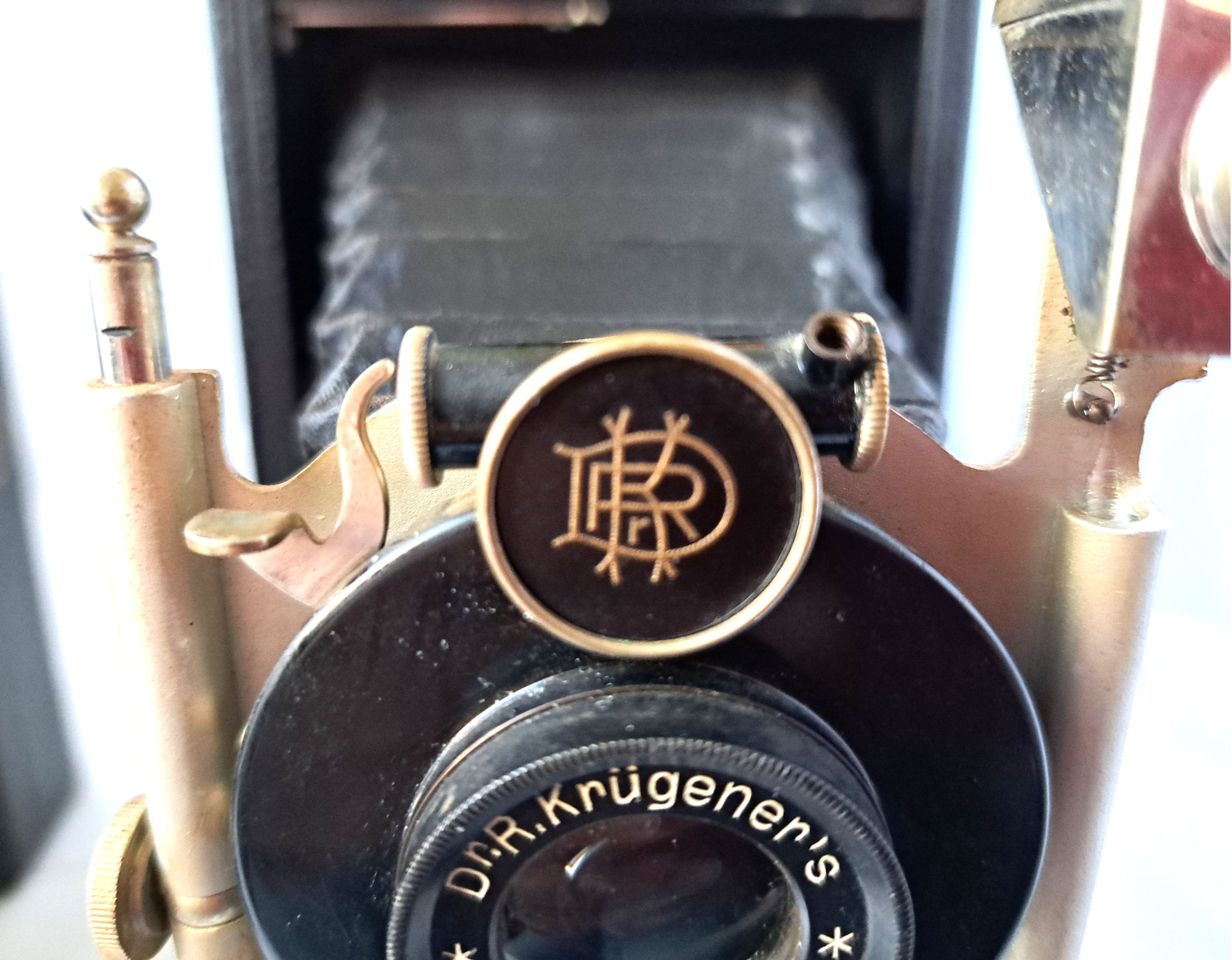 Bei meinen anderen ICAs habe ich es auch nicht gefunden. Im Katalog von 1925 gab es auch keine Kamera mit der Plakette vor dem Verschluss. Dort ist allerdings die ICA Teddy nicht aufgeführt. Bei Krügener und Hüttig findet man einige Kameras mit der Plakettenanbringung. Ich nehme an, man hat in der Übergangszeit der Zusammenlegung bei Krügener- und Hüttig-Kameras die Plaketten durch ICA ausgetauscht.