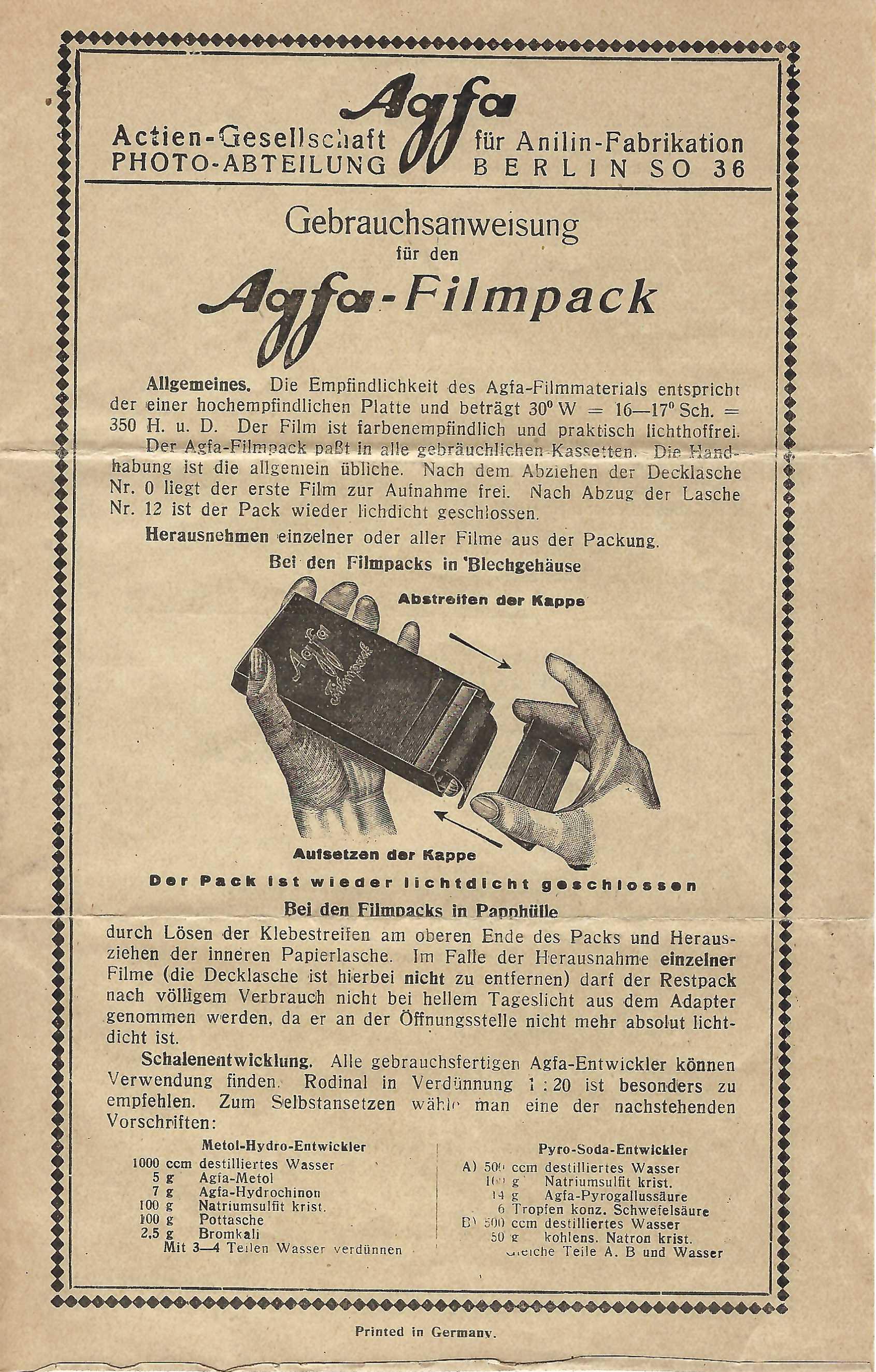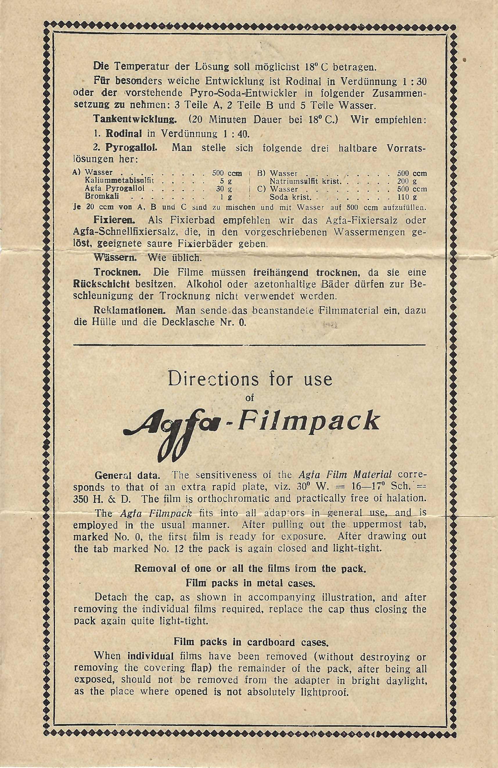 unten folgend zwei Seiten der Agfa-Anleitung für Filmpacks. Wenn jemand noch eingehender Informationen dazu hat, wäre es nett, die hier zu teilen. Ich habe im Internet nur unter: