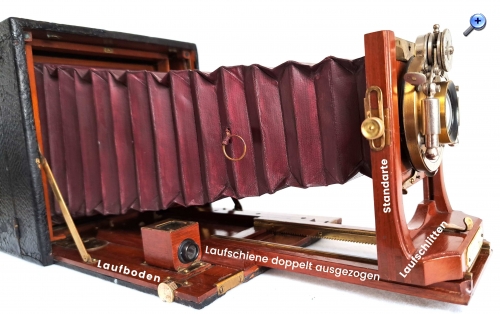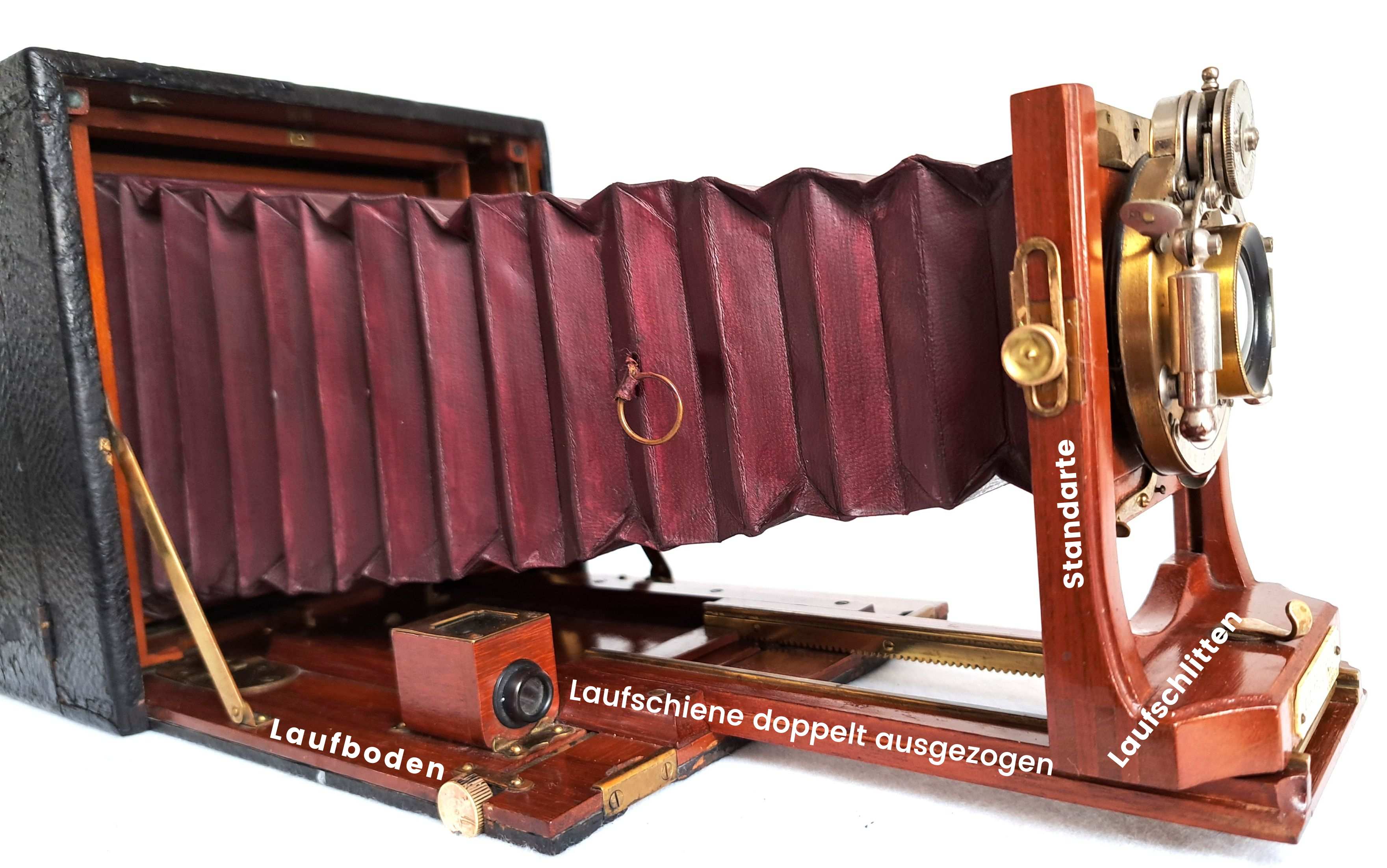 Ja, Wolfgang, das ist z. T. sicherlich widersprüchlich und nicht mit dem alltäglichen Sprachgebrauch vereinbar, schon gar nicht mit dem heutigen. Das setzt sich fort bei Ausdrücken wie Objektivbrett usw. Aber zur Ehrenrettung von Pritschow muss ich mich korrigieren; er spricht nicht explizit von Brett, sonder immer nur vom Laufboden, der häufig zugleich Deckel der Kamera sei und dessen Hauptaufgabe es sei, die Führungsschienen aufzunehmen. Brett habe ich benutzt, besser wäre wohl Platte o.ä.. Aber in der Tat habe ich in zeitgenössischen Schriften auch Laufbrett gefunden, nämlich bei Hanneke (Das Arbeiten mit kleinen Kameras, 1915, 6. Aufl. 1928)...