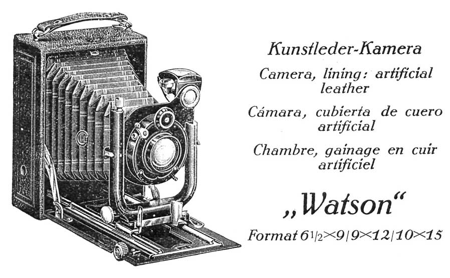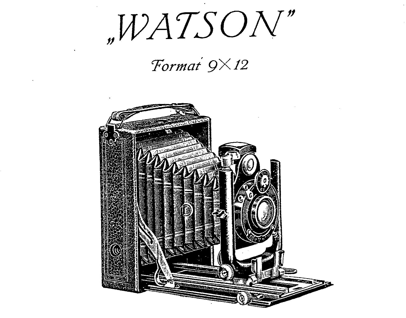 Die Watson war die Plattenkamera, die am längsten im Sortiment von Welta geführt wurde. Ab wann die Kamera gebaut wurde ist mir nicht bekannt, aber 1923 findet sich der erste Nachweis. Zum letzten Mal taucht die Watson wohl 1935 im Welta-Katalog auf. Über die gesamte Zeit wurde die Kamera in den Formaten 6,5x9, 9x12 und 10x15 angeboten. Zwischenzeitlich war auch das Format 6x9 und die englische ¼ plate erhältlich. Im Laufe der langen Produktionszeit durchlief das Modell zahlreiche kleinere oder größere Veränderungen. Ganz grob kann man wohl vier Modellvarianten festlegen. Die erste (Ur-)Variante soll hier im Folgenden vorgestellt werden.