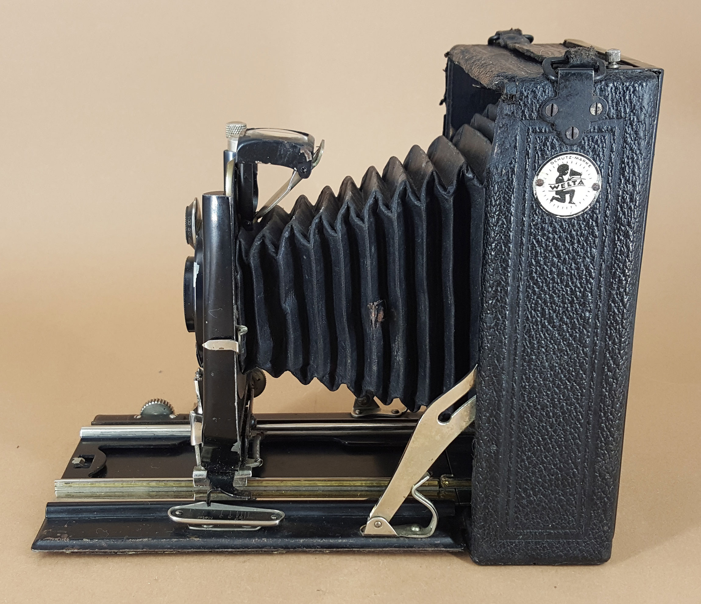 die im Eingangsbeitrag vorgestellte Kamera steht als Welta Rak im Verzeichnis der Plattenkameras, die Welta Rak hatte aber nur einen einfachen Auszug. Die vorgestellte Kamera ist eine Welta Watson, die auf Grund ihrer Merkmale etwa in den Zeitraum 1924 - 1928 datiert werden kann. Anbei zum Vergleich eine hist. Katalogabbildung.