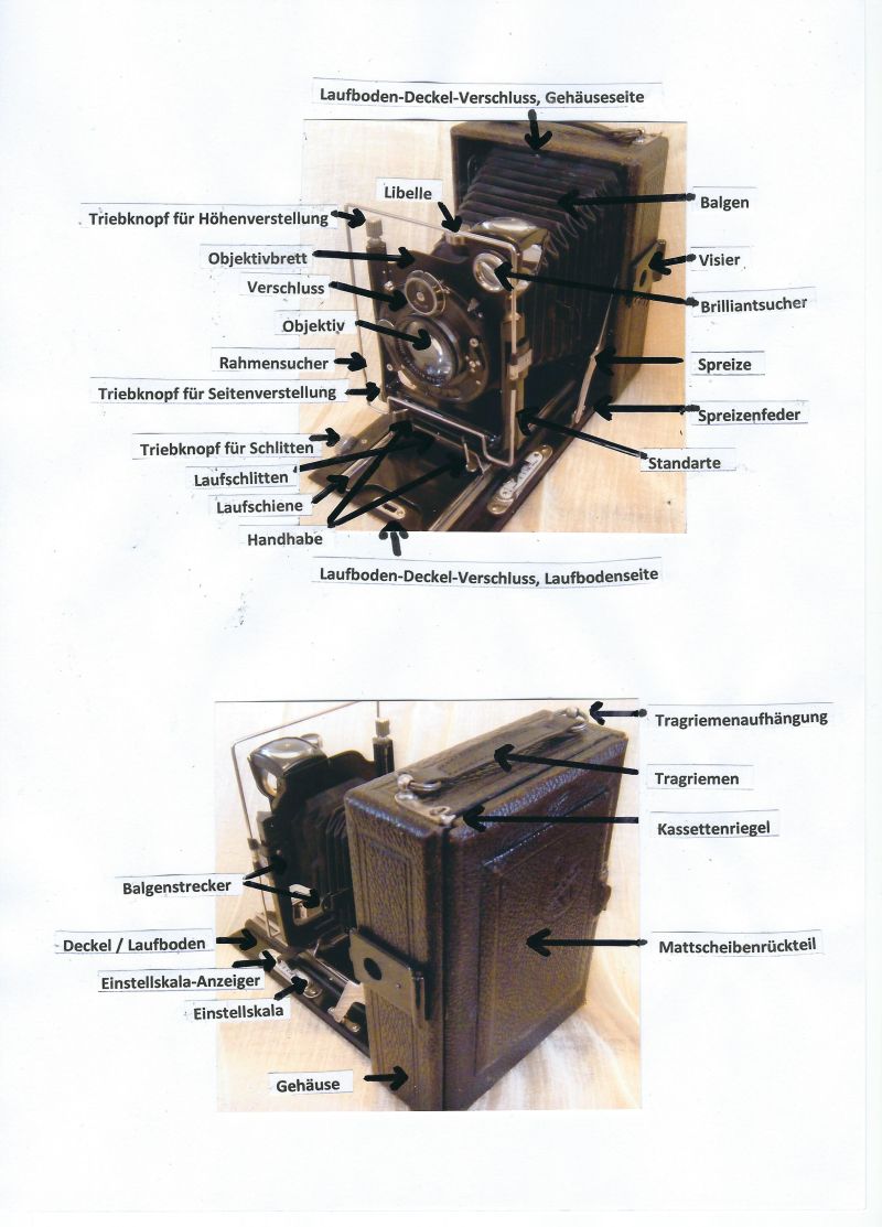 Freier-Sascha:Ich habe da mal eine Skizze erstellt über die Nomenklatur verschiedenen Teile einer typischen Laufboden-Plattenkamera: