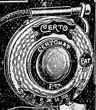 Im April 1905 findet sich auch die erste Erwähnung des Certo-Minimal-Verschlusses. Zu diesem Verschluss habe ich weder einen Patent- noch einen Gebrauchsmusterschutz finden können, aber auf einer Werbeanzeige vom Mai 1905 ist er abgebildet: