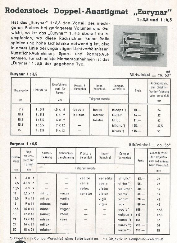 Nachtrag 05.09.14: Anbei eine anzeige vom Eurynar aus 1936; da wird die Variante 1:6,8 noch erwähnt.