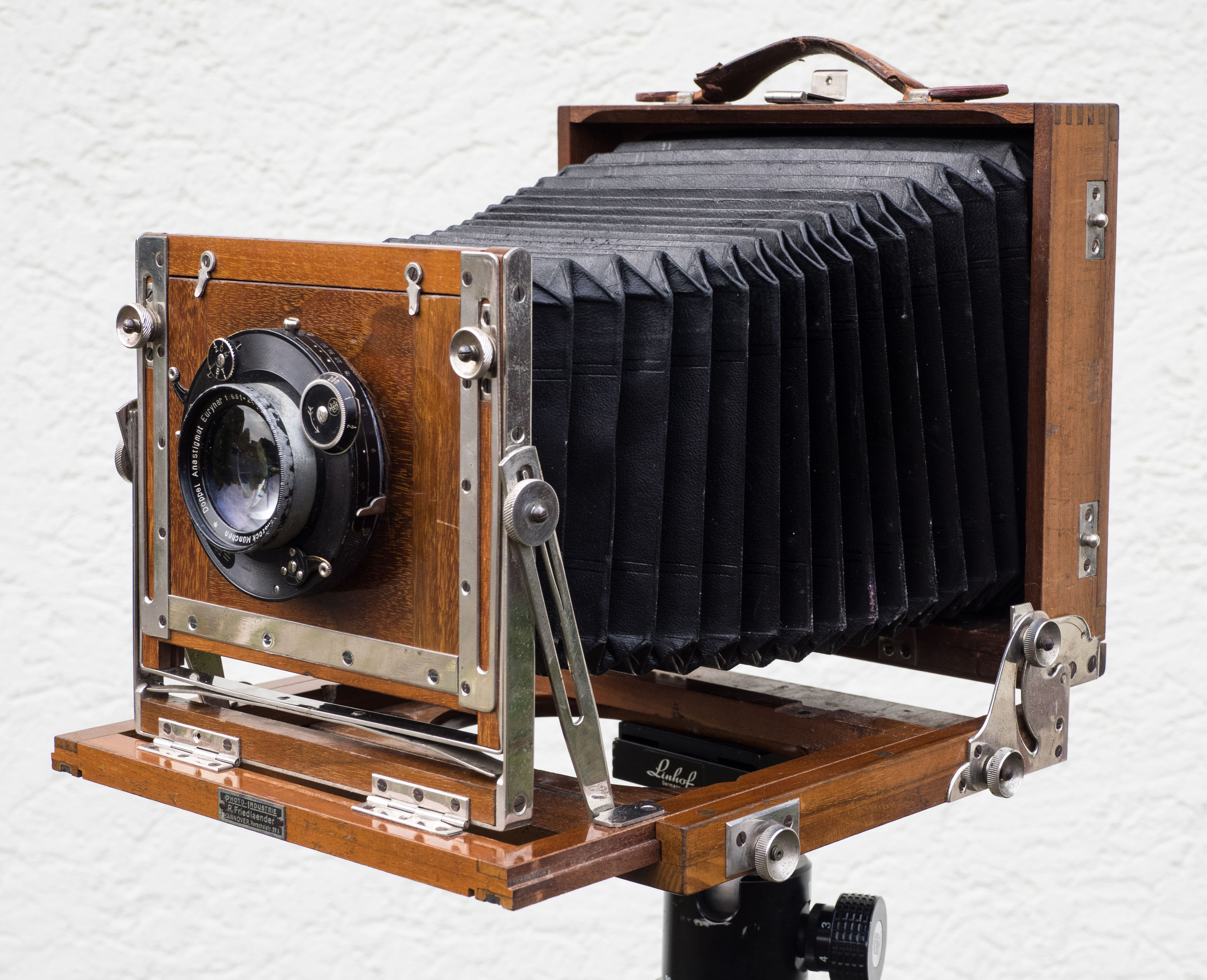 Ich habe die Kamera seinerzeit ohne vollständiges Objektiv gekauft, das 240er Eurynar auf den Bildern passt zwar sehr schön dazu, ist aber nicht die ursprüngliche Ausstattung.