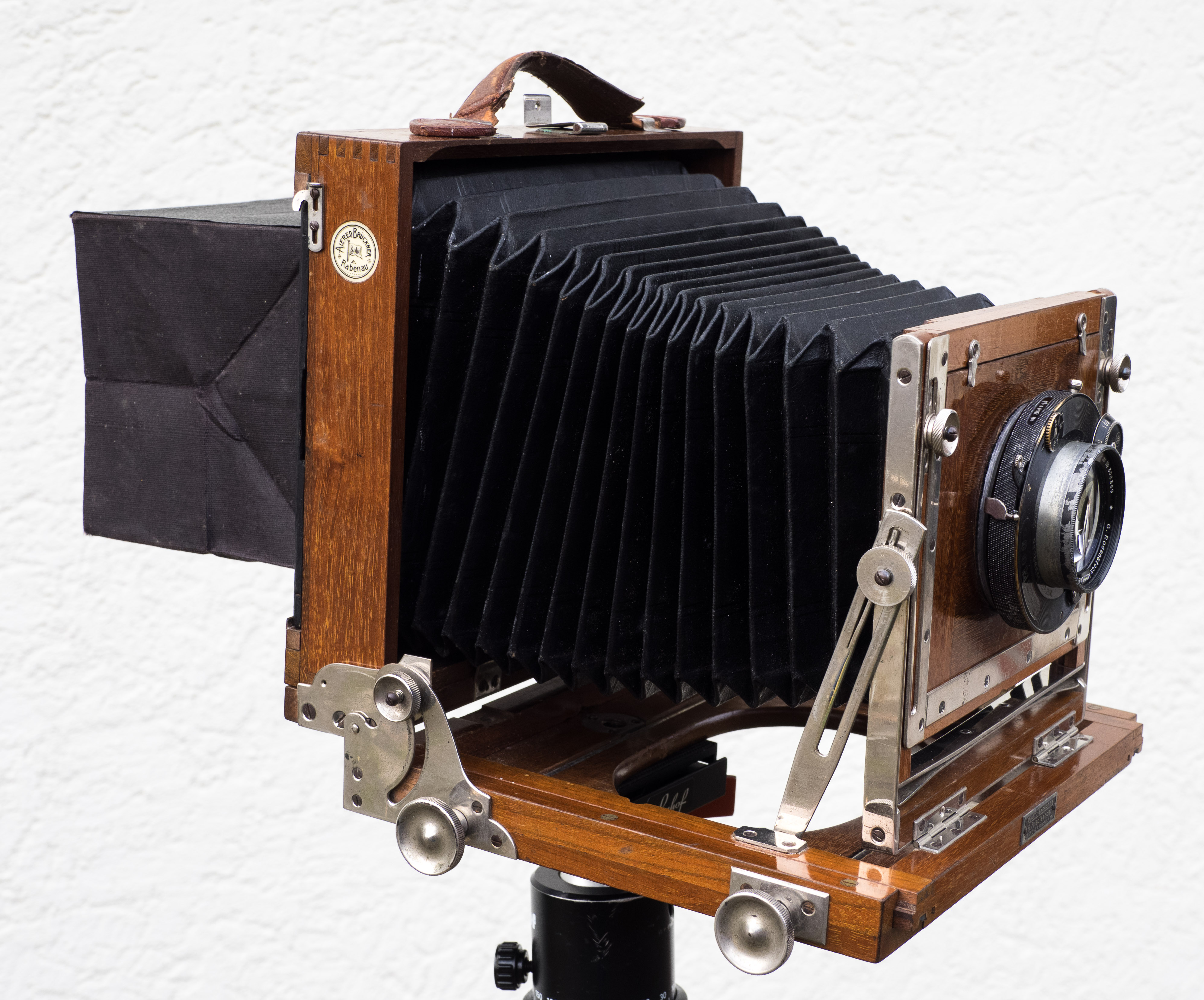 Ich kann die Hinweise nochmal bestätigen, dass die im Katalog abgebildete Kamera wohl eine 13x18-Kamera von Alfred Brückner Rabenau (Gloria?) ist, wie ich sie vor ein paar Jahren gekauft habe: