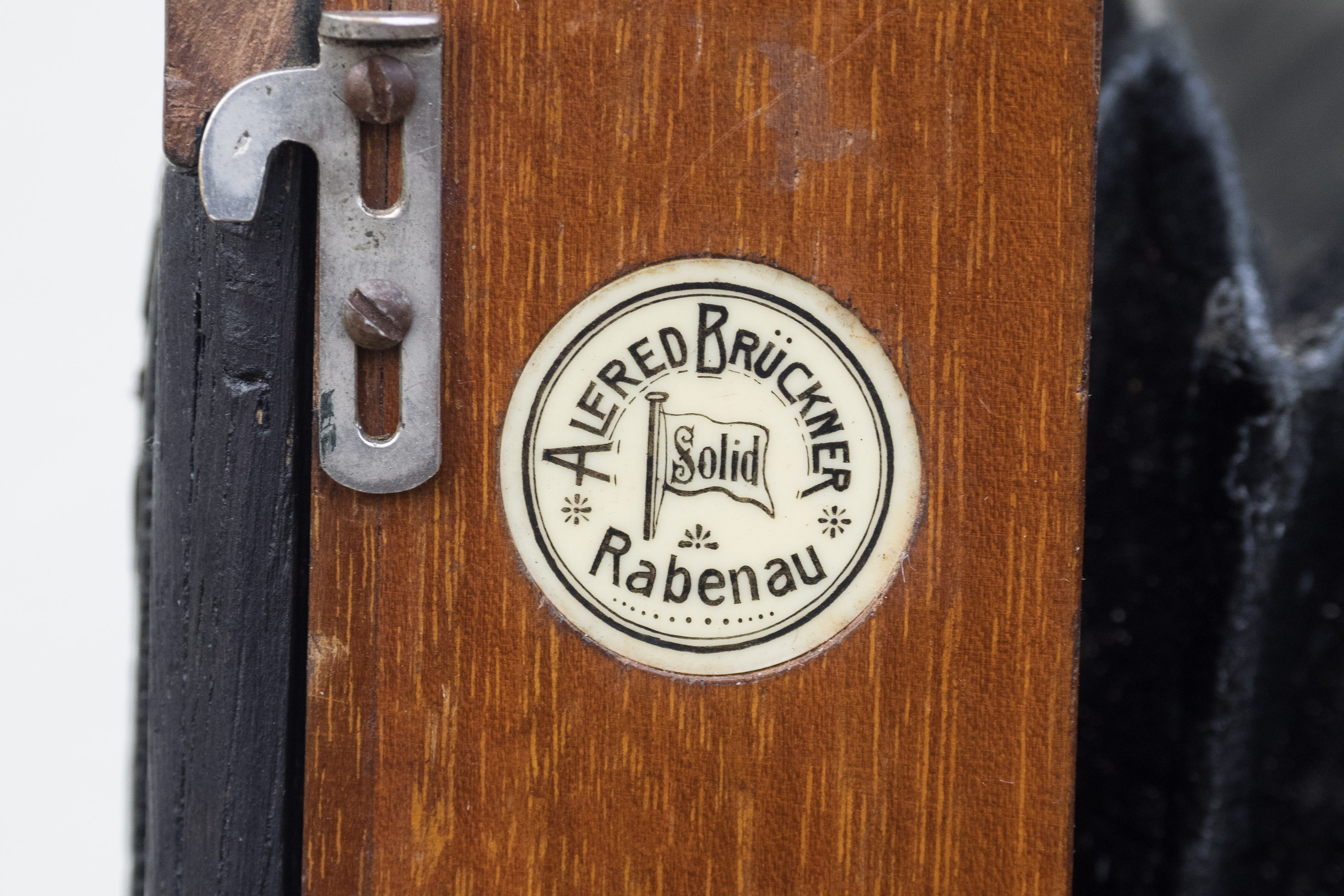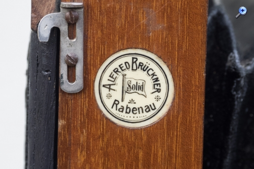 Ich finde es interessant, dass Sascha auch eine solche Kamera hat; das ist überhaupt die einzige weitere Kamera dieses Typs, die ich jemals irgendwo gesehen habe. Ich habe sonst keine Informationen zu der Kamera, im Internet gibt es nichts dazu; der Staeble- Katalog von 1911 deutet darauf hin, dass die Kamera da bereits gebaut wurde, meine hatte, so wie ich sie bekommen hatte, ein unvollständiges Objektiv mit einem Compur-Verschluss, der mit der Seriennummer auf die frühen Zwanzigerjahre verweist. Von Brückner sind ansonsten vor allem Reisekameras der traditionellen Bauart bekannt, die bis in DDR-Zeiten produziert wurden und heute noch oft angeboten werden.