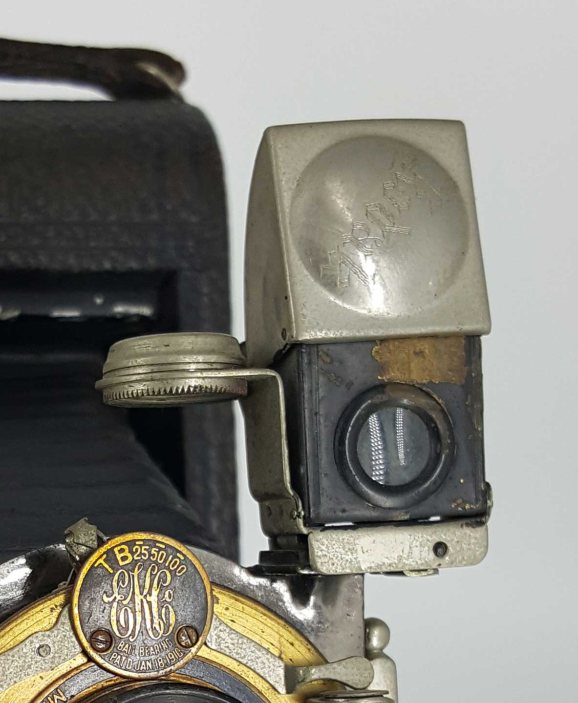 solche Abdeckungen findet man zu Beginn des 20. Jahrhunderts relativ häufig (zum Bsp. bei diversen Magazin-Boxkameras, oder auch bei Platten- und Rollfilmkameras von Hüttig, Wünsche und Ernemann). Bei Goerz und bei Kodak wurden sie auch noch relativ lang gebaut und wie beim Link von Jan zu sehen, auch für "Werbung" genutzt.