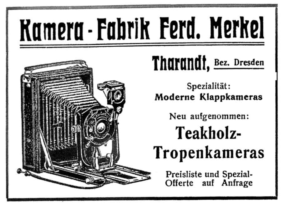 -durch die obige Merkel-Anzeigen, -durch Axels Merkel-Vesta-Kamera, -durch die Wahrscheinlichkeit dass Firma Arnold in der 1920iger Jahren kein Hersteller von Kameras mehr war (vorher vermutlich eher von Holz-Reisekameras und Holz-Artikel u.a. für die Fotografie)
