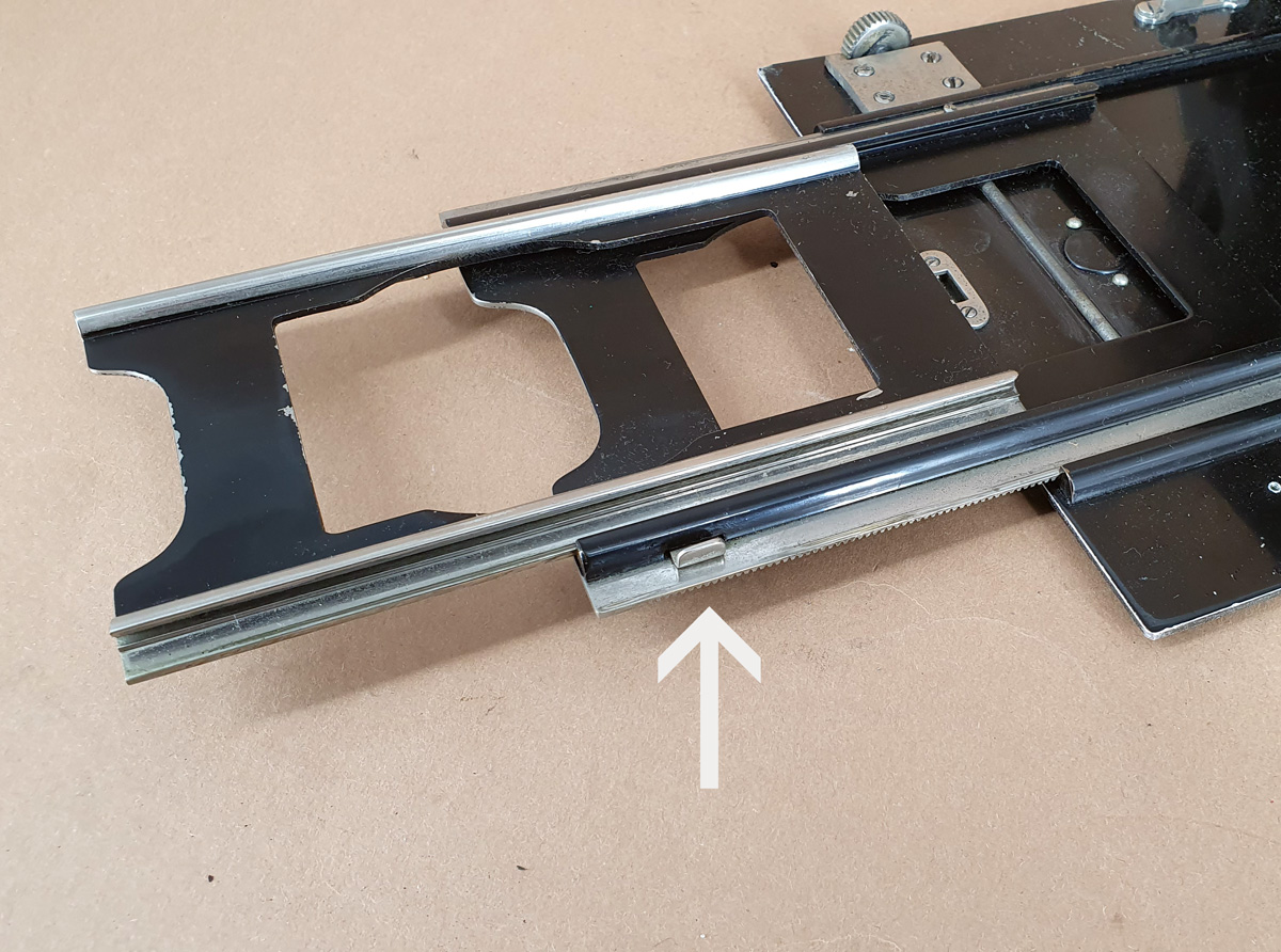 ich habe mir die Kamera nochmals angeschaut. Sie hat am Laufboden so einen Knopf, der sich mit einem Knacken eindrücken lässt. Dabei wird eine Riegel nach unten geöffnet. Da bewegt sich an den Laufschienen nichts. Habe jetzt ordentlich Öl reingetropft.