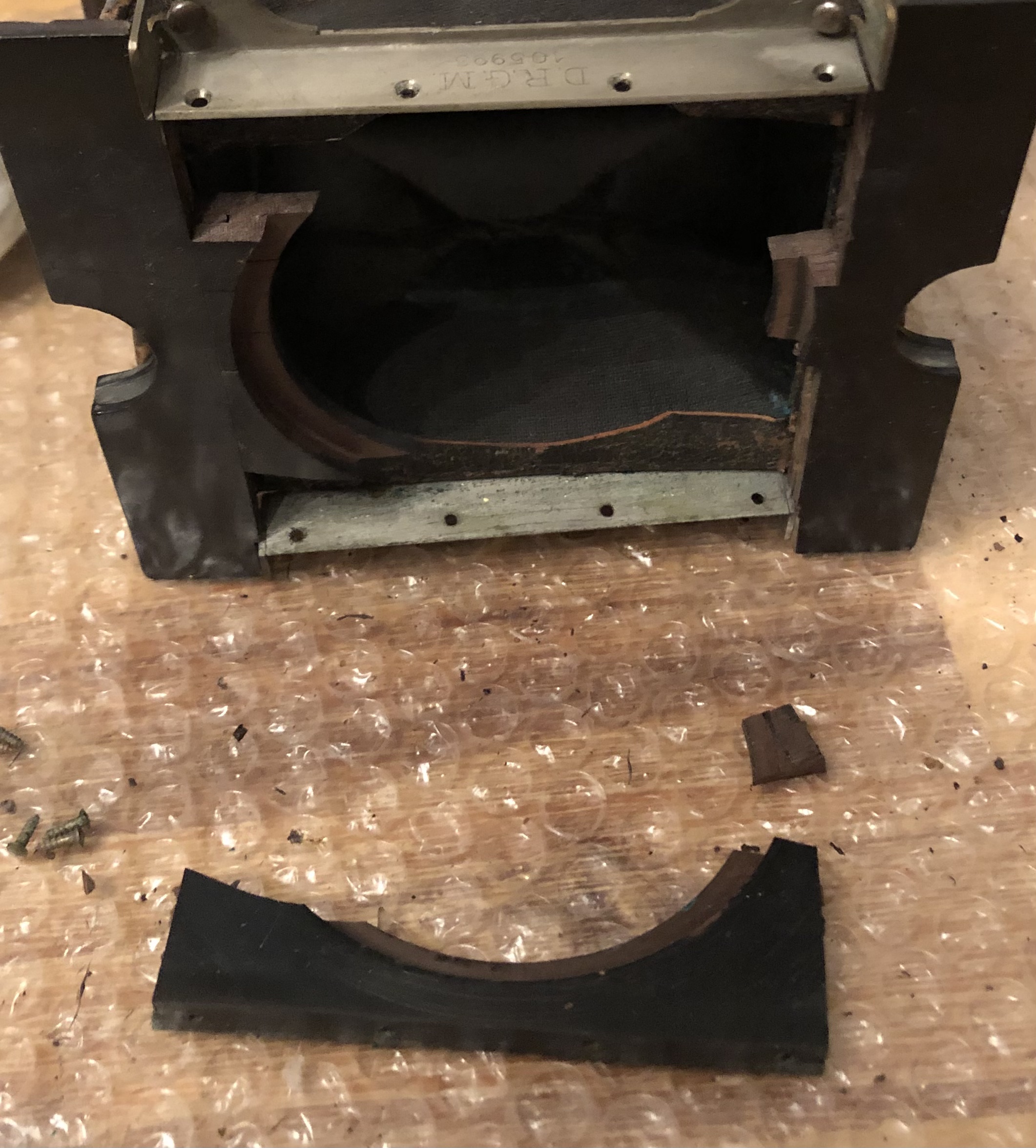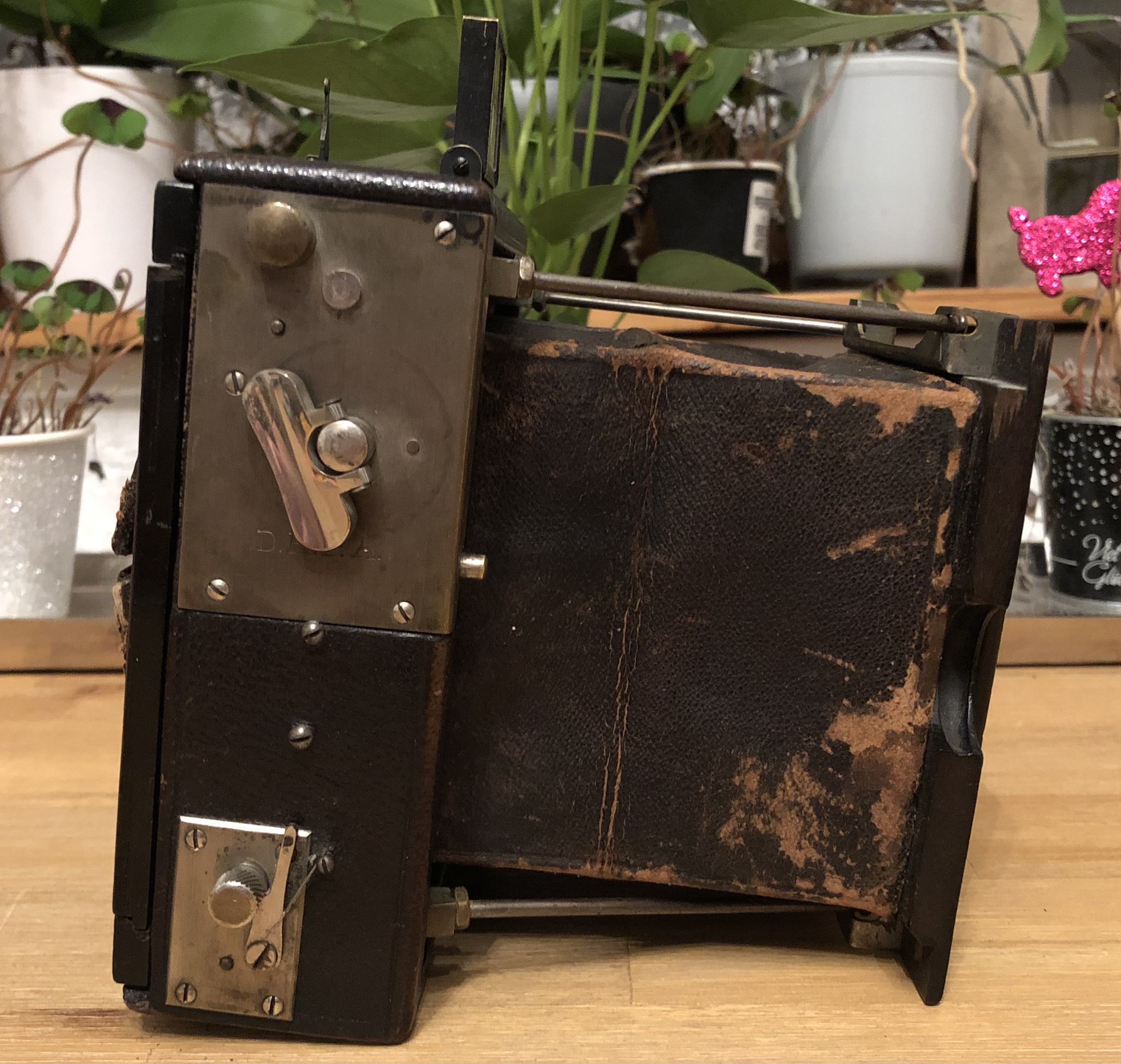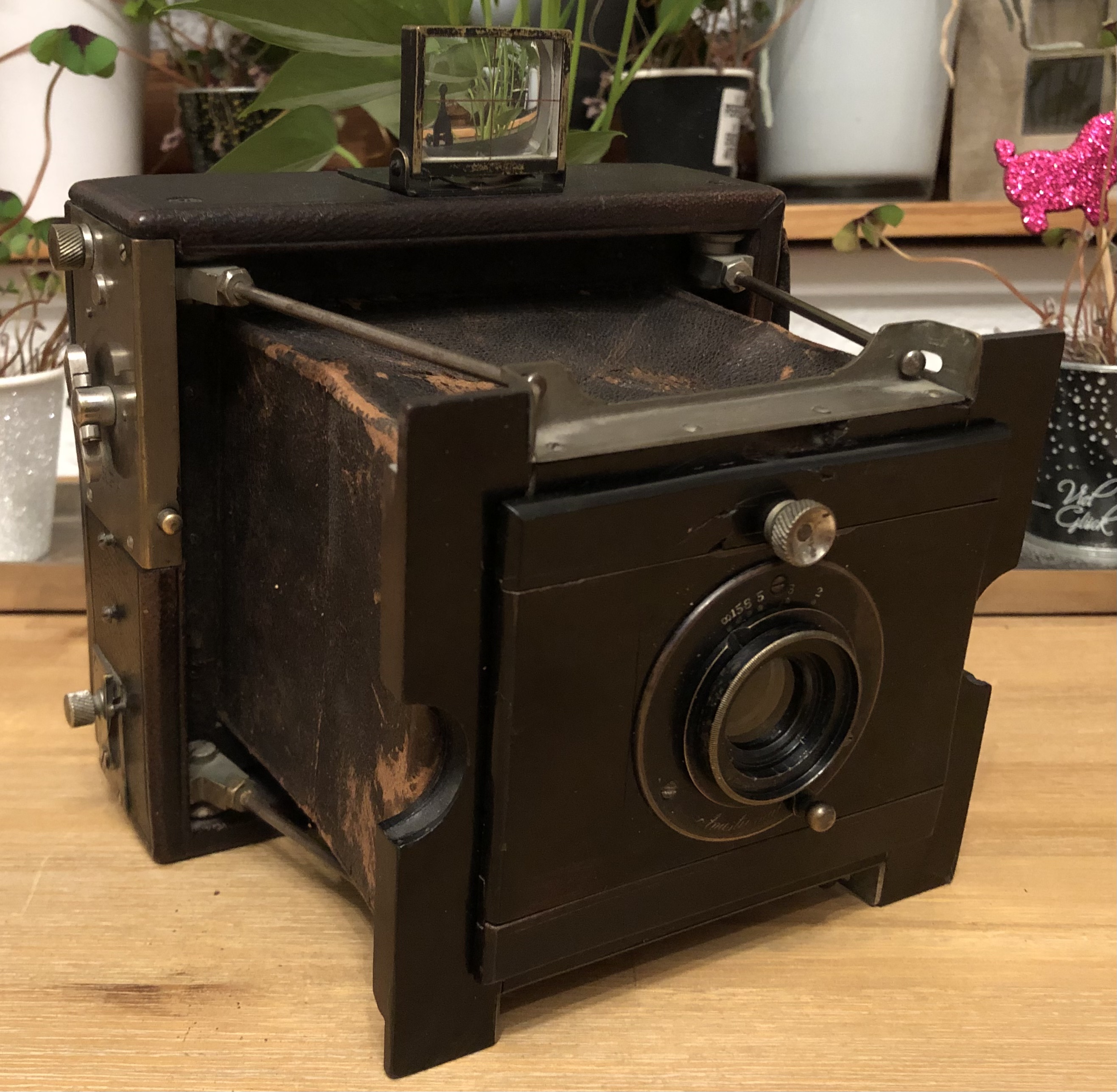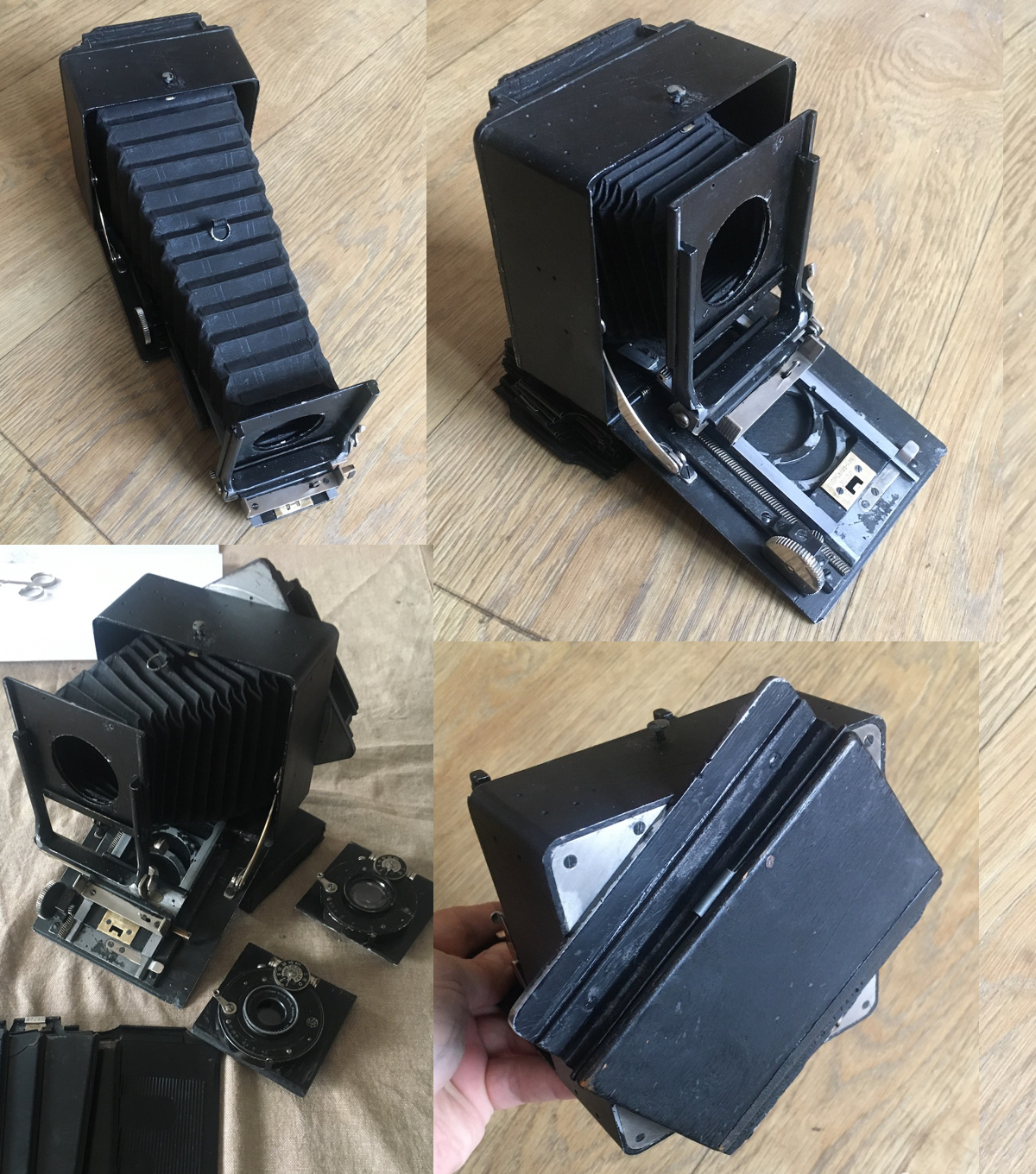 durch Zufall bin ich an eine der bereits von Freier-Sascha gezeigten Spreizenkameras aus der wahrscheinlichen Produktion von Dr. Krügener *** gekommen. Das Objektivbrett war leider sehr zerbröselt aber noch so zu retten dass es wieder genug Stabilität bietet. Den Verschluss muss ich noch überarbeiten.
