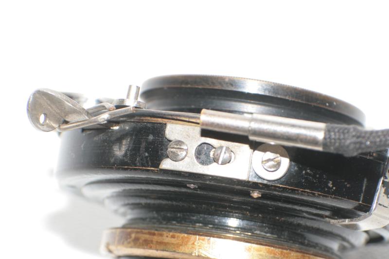 So wie es aussieht, geht es hier wieder um einem "Übergangsverschluss" von auch etwa 1909-1910. Der fehlende Zylinder würde wahrscheinlich doch nachträglich entfernt (vielleicht auch defekt), da serienmässig wäre auch der Hebel entfernt worden, der geblieben ist (nehme ich an) und weil es auch in dieser Zeit nicht unüblich war, Verschlüsse anzubieten die sogar beide Auslöser (Draht und Ball) verwenden könnten, also warum dann den 1 Zylinder entfernen? (und dabei unsauber da man merkt, da dort doch etwas fehlt).