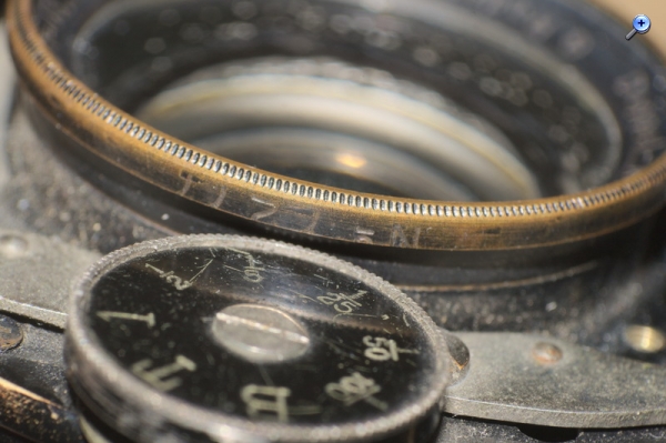 Doch bei dieser Gelegenheit fiel mir etwas auf, was ich bisher immer übersehen hatte: die vierstellige Objektivnummer! Sie sitzt an einer extrem ungewöhnlichen Stelle - am ganz schmalen Rand außen, zudem ziemlich verdeckt vom Luftzylinder (hoppla, mit f, nicht mit s!). Der Rand ist so schmal, daß sie nur unvollständig geprägt ist und nur mit Lupe am herausgedrehten Objektivteil sicher gelesen werden kann ... Offenbar hatte Rodenstock da noch ein wenig hinzuzulernen.