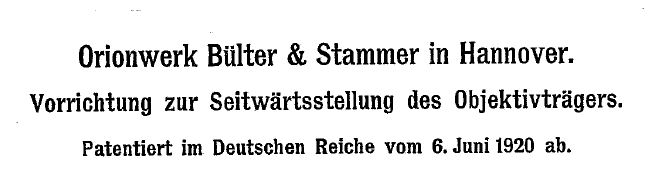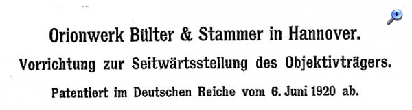 Das Orionwerk gabt es übrigens seit 1920 (Und dann nicht 1921, was eigentlich überall zu finden ist). das beweisst ein Patent angemeldet Juni 1920, wo Bülter & Stammer bereits für das Orionwerk signieren.