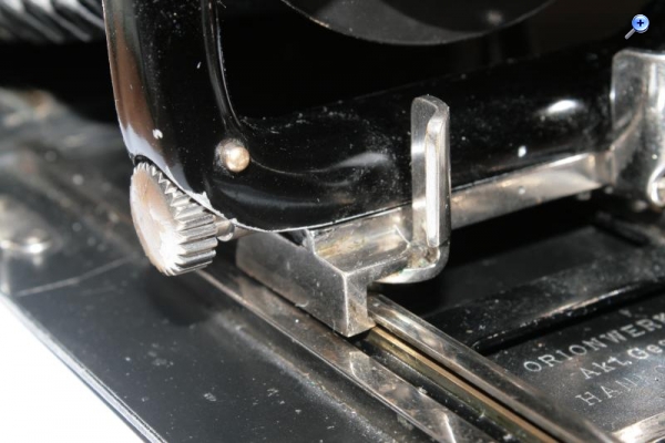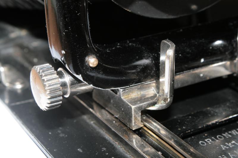 Wenn man dann noch bedenkt, daß von der Patentanmeldung bis zur -erteilung eher mehr als drei Jahre vergehen ... Das Patent hatte offenbar bald viele Lizenznehmer. Und das Orionwerk hat das Ganze noch weiterentwickeln wollen: Habe gestern den Schlitten an einer Kamera aus dem Orionwerk zerlegt und geputzt. Die Seitverschiebung ging mir zu schwer. Leider weiß ich bis jetzt nicht, um welches Modell des Orionwerks es sich handelt - ich finde keine Orion, die genauso aussieht wie meine.