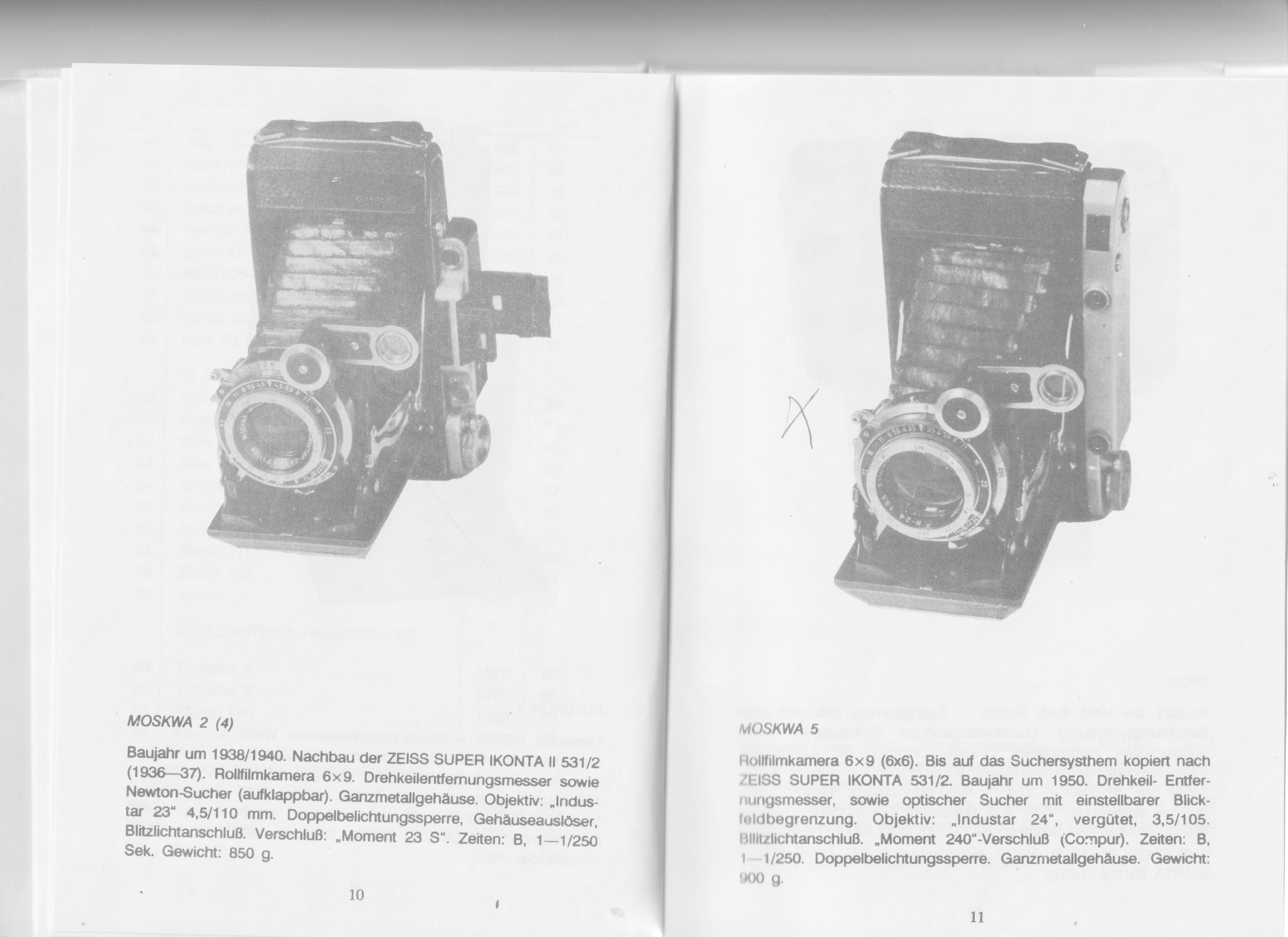 Fotokor I um 1935 anlehnung an Balda Nizza oder Voigtländer VAG Moskwa 2 um 1938 Nachbau der Zeiss Super Ikonta II 531/2 Moskwa 5 wie vor jedoch um 1950 6x6 Turist