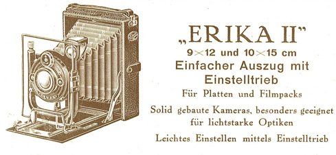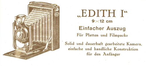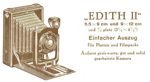 Die Unterscheidung zwischen Edith I und Edith II bzw. zwischen Erika I und Erika II ist da unter Umständen schon schwieriger. Generell kann man sagen, dass eine Kamera mit Metallgehäuse immer die Variante „II“ ist. Es wurden jedoch anfangs auch bei beiden (Edith und Erika) die Varianten „II“ mit Holzgehäuse gebaut. Die Unterscheidung ist dabei nicht immer ganz eindeutig, aber als Hinweis kann gelten: Edith I = Granitolbalgen + Laufboden aus Blech, Edith II = Lederbalgen + Laufboden aus Aluminium, Erika I = schmale Laufschiene + ohne Rahmensucher und Visier, Erika II = breite Laufschiene + Rahmensucher und Visier.