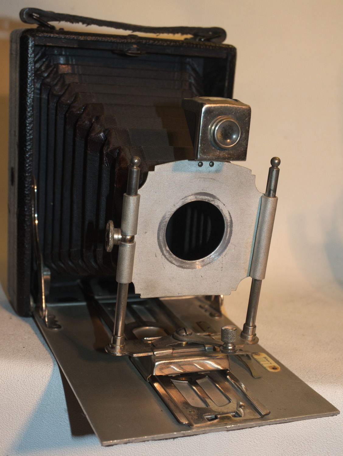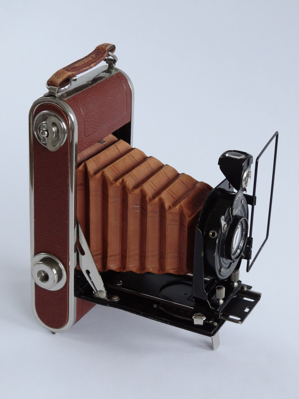Der Clou ist, dass es, wie bei den anderen Firmen, viele Übergangsformen gibt. Deine Kamera hat Spreizen und Spreizenfedern wie sie bei der Merkel Metarsis oder Minerva vorkommen, gleichzeitig eine Griffaufhängung wie bei den einfachereren Merkels. ..