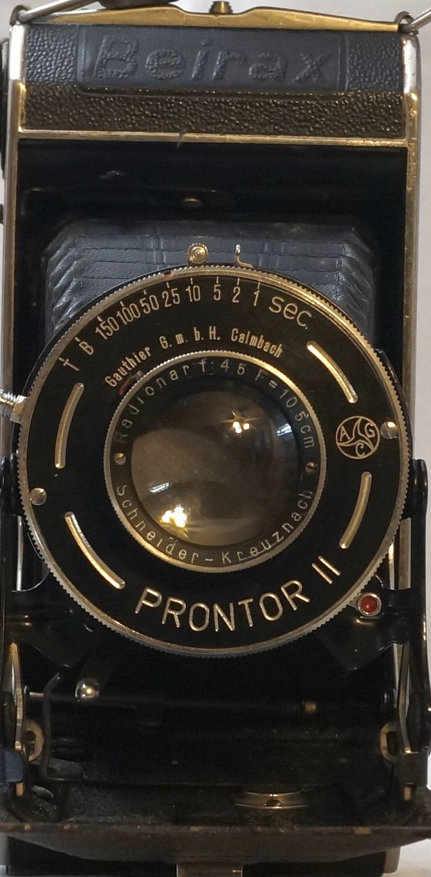 danke für die Frage - es handelte sich um eine meiner ersten Sammlerkameras, und offenbar hatte ich etwas übersehen und anderes nicht genau ... Im Hinterkopf hatte ich, es handele sich um die Auta von 1939 - aber die Fundstelle habe ich nicht mehr, und von der Seite, in der das auch ähnlich klingt, habe ich nur als Text, und interpretierbar nur: "Springbalgen-Klappkamera, Wirgin, Auta, mit Handstativ, um 1940, Verschluss Gauthier, Calmbach - Vario mit geätzter Platte, 1/25, 1/50, 1/100. Objektiv: Wirgin - Wiesbaden, Anastigmat 1:8,8 / 10,5 cm mit Rahmensucher (Newton-Sucher). Gebaut unter Max Wirgin in der Zeit des Konkursverfahrens. Letzte gebaute Auta vor dem 2. WK. Alters- und Gebrauchsspuren.". Heute hebe ich mir zusätzlich oder nur die PDF's der Webseiten auf ... Webseiten sind so flüchtig, meist selbst wenn heruntergeladen ....