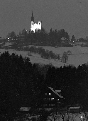 Die beigefügte Aufnahme der Kirche vom Pöstlinberg / Linz/Donau habe ich nach dem Brand eines Turmes 1963 auf Agfa Ortho Platte mit 17° DIN bei Blende 9 (= Bl. 18) ca. 10 Sek. Belichtet.