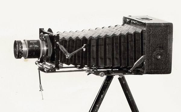 Dabei erwähnte er, dass er den Doppelanastigmat immer dann seiner Vorderlinsengruppe "beraubt" hatte, wenn er quasi eine Teleaufnahme machen wollte. Dazu liess sich die Frontgruppe leicht herausschrauben. Der Balgen musste aber deutlich weit herausgezogen werden, um scharf einstellen zu können. Es soll bei dieser Kamera aber nur im Bereich unendlich funktioniert haben.