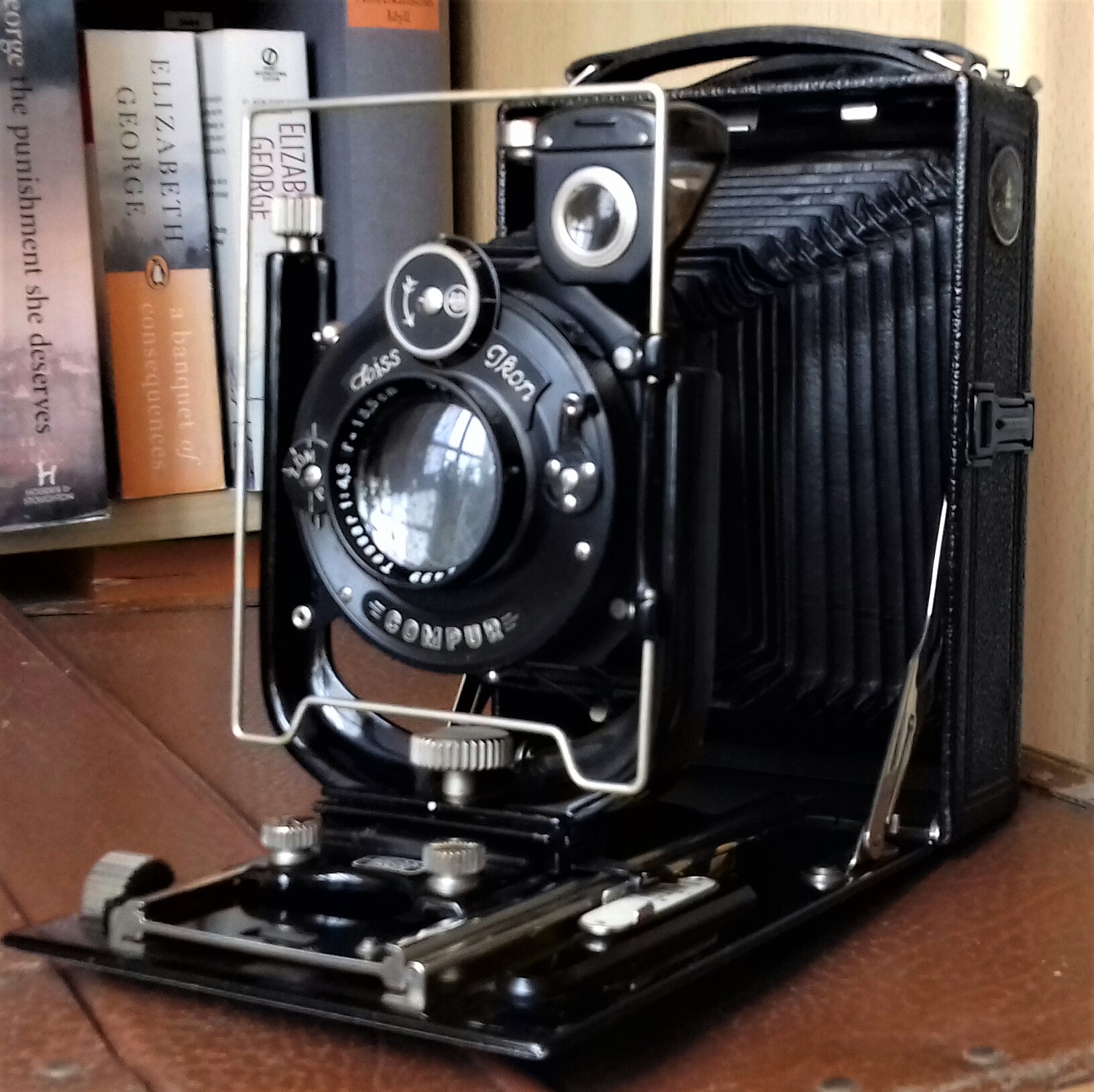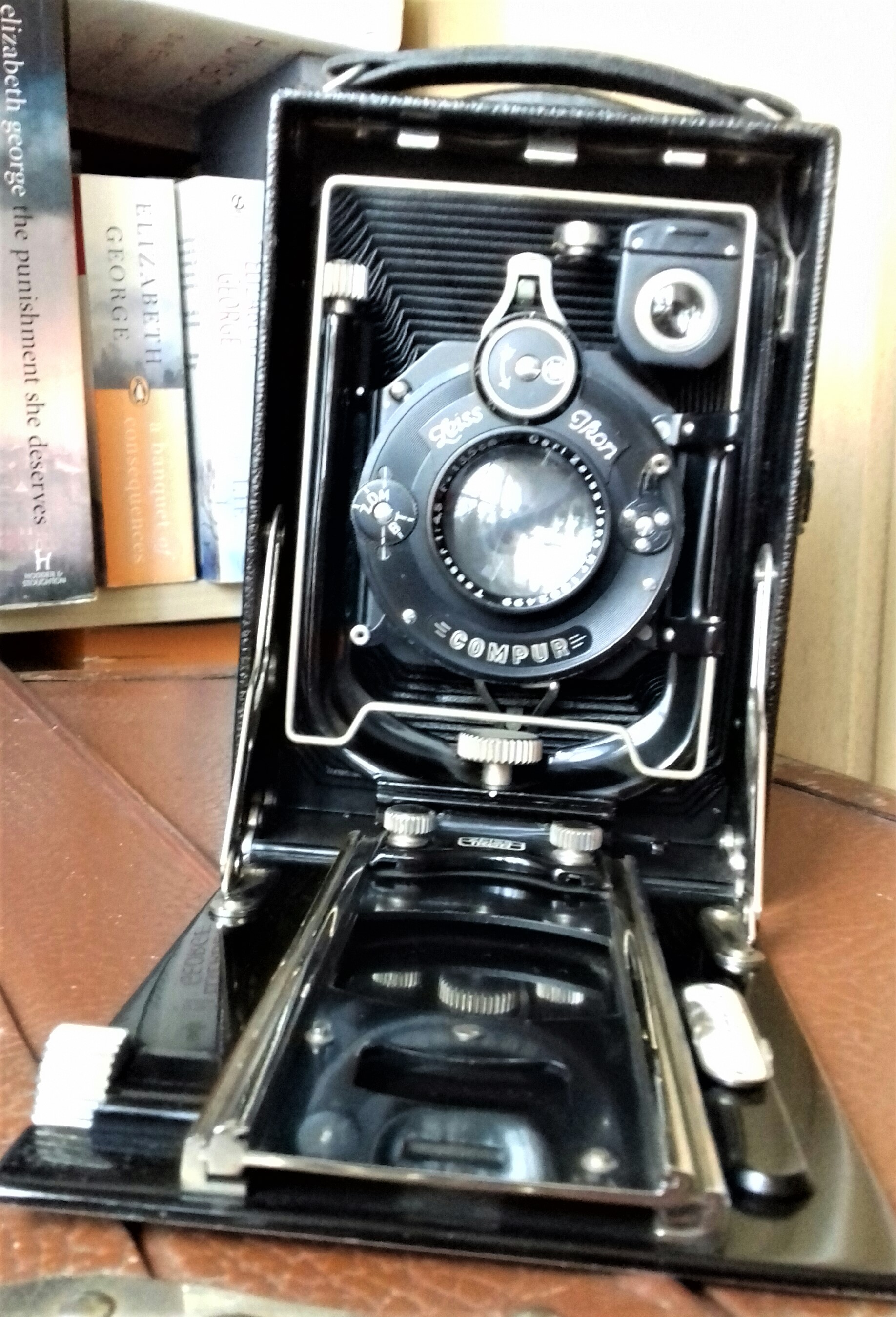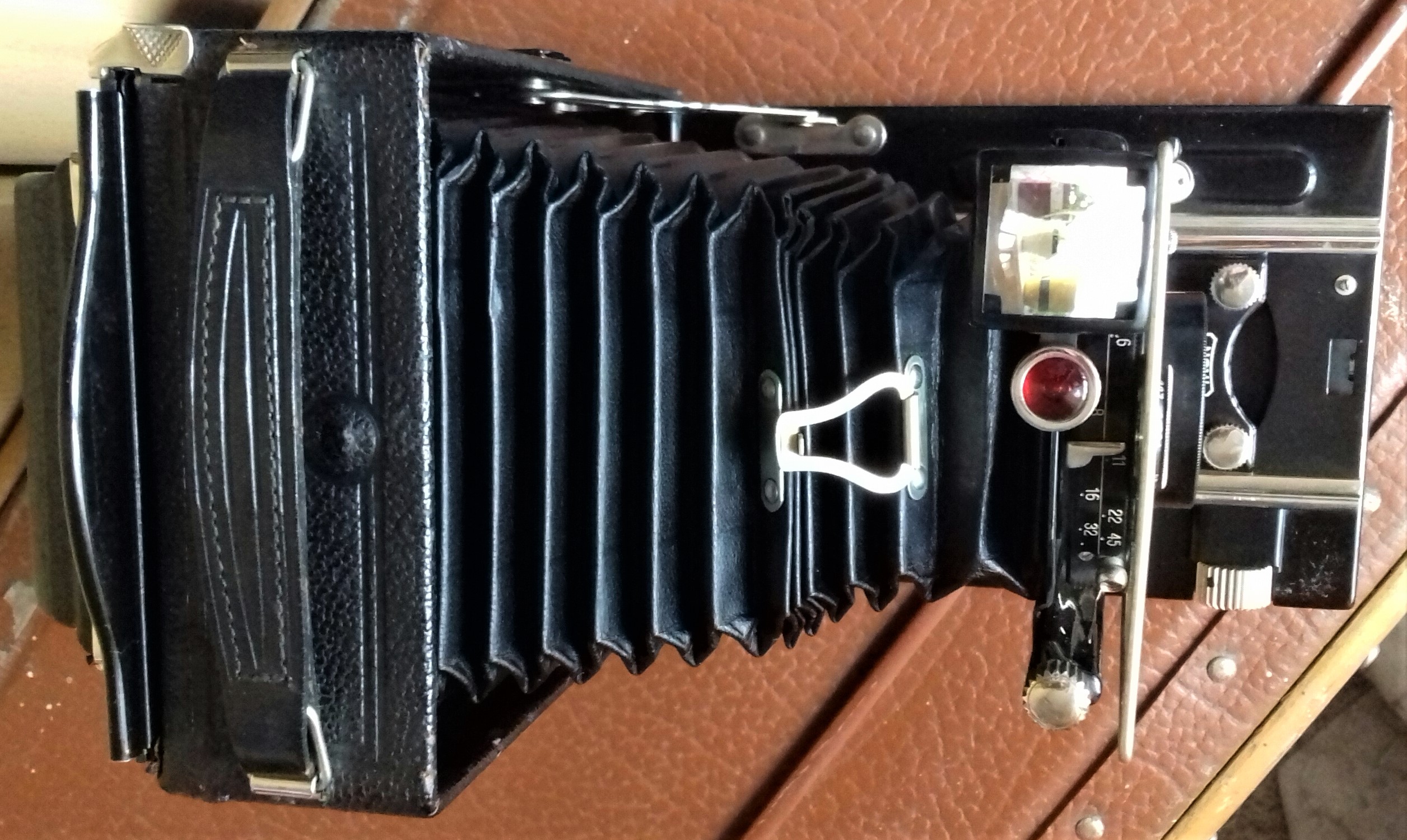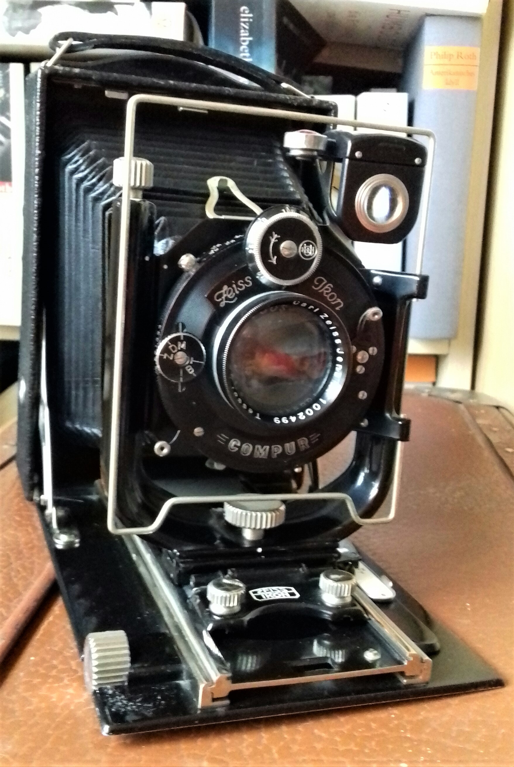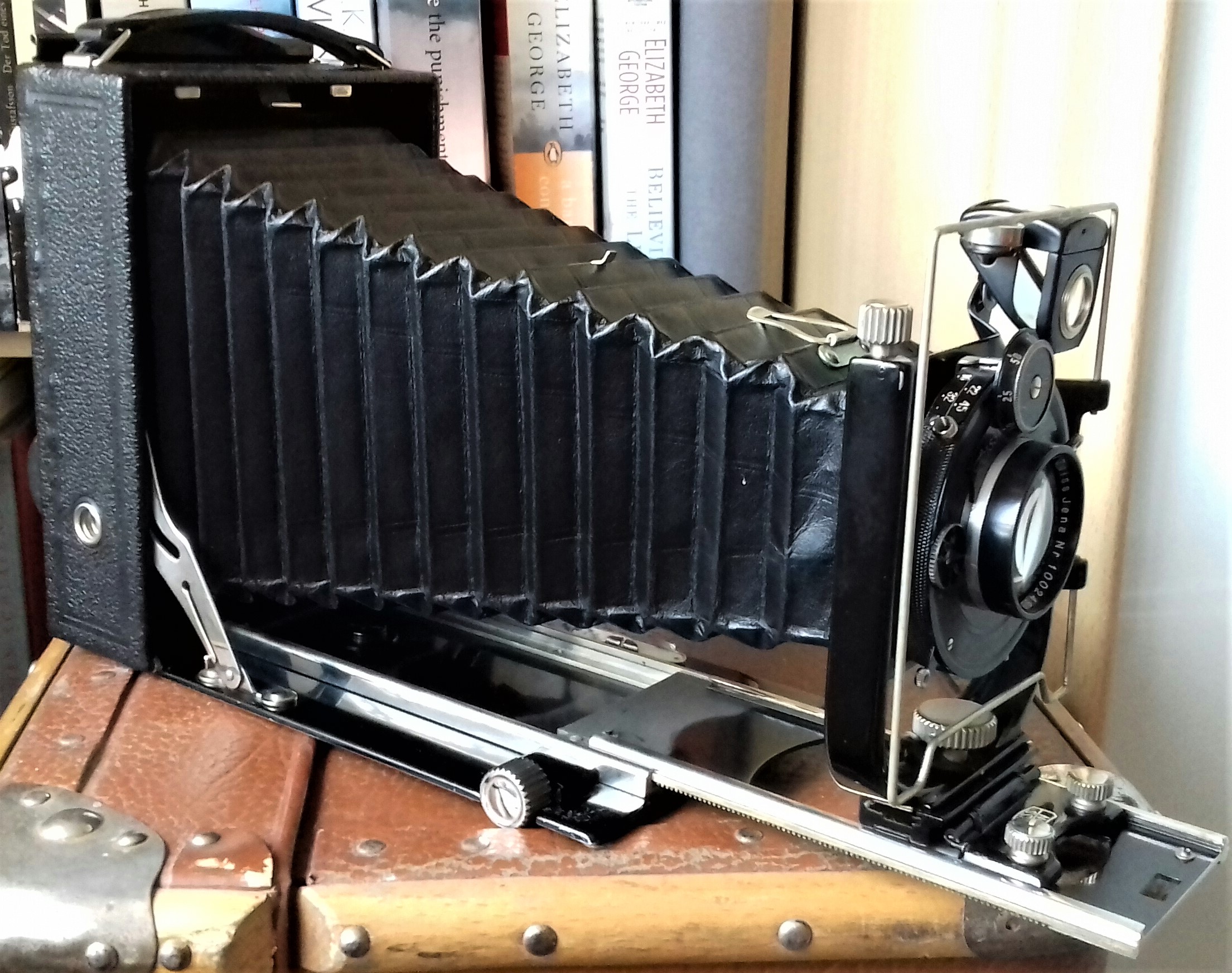 Die Kamera ist aktuell mit 120er-Rollfilm geladen (Fomapan 100 S/W) und soll bald zum Einsatz kommen. Der Zustand ist sehr gut, sogar die Wasserwaage funktioniert nach 90 Jahren noch. Nur die langen Zeiten ab 1/5 hängen. Ich habe den Balgen neu gewachst, alle Metallteile entstaubt und die äußere Optik gereinigt. Diese alten Lederbalgen sind höchst solide, gar kein Vergleich zu den ‚Papp-Balgen‘ etwa der Agfa-Nachkriegskameras.