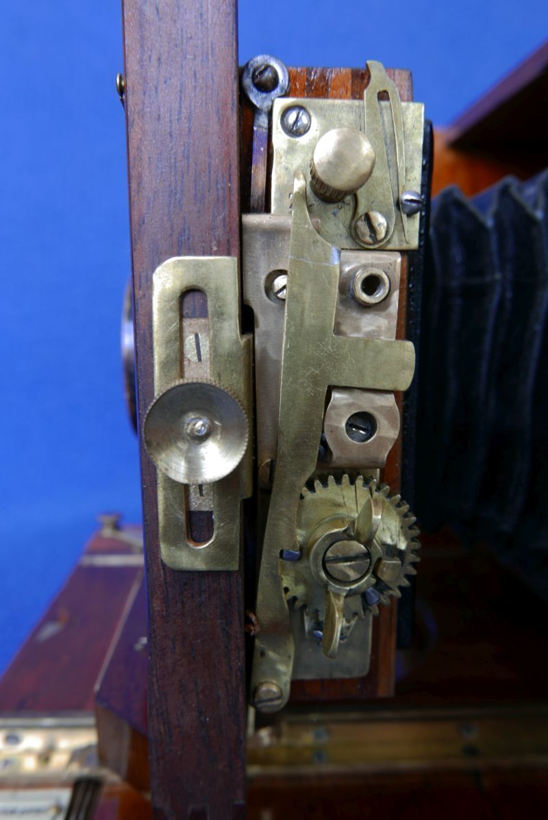 Der Verschluss wurde vom gleichen Hersteller gebaut wie die Kamera selbst, denn sowohl auf dem Verschlussgehäuse, als auch an verschiedenen verdeckten Stellen der Kamera ist die Ziffer "30" eingestanzt bzw. graviert. Das die Kamera von einem renommierten Hersteller sein muss, zeigt auch die sauber ins Holz eingestanzte Seriennummer 114676