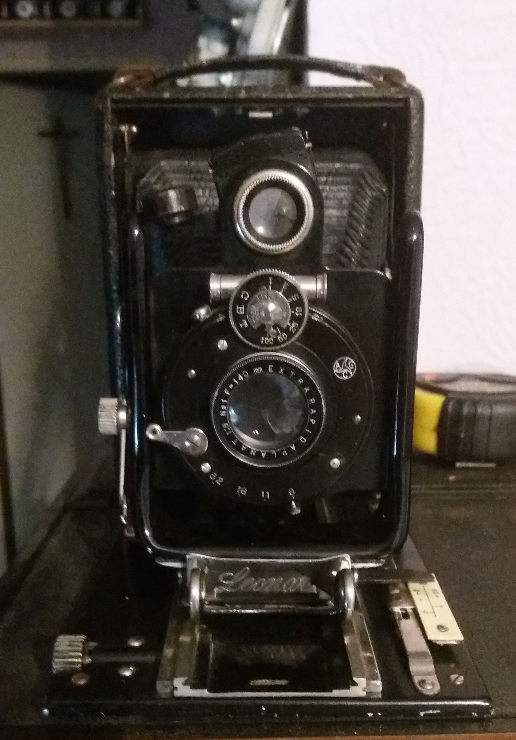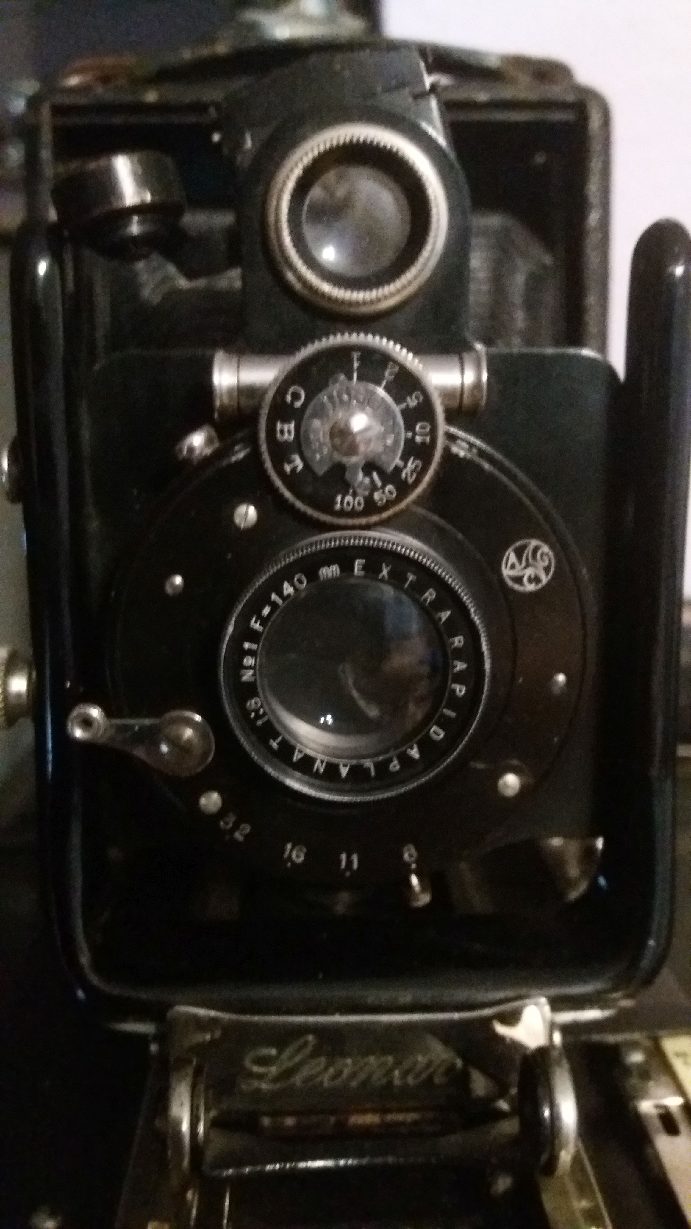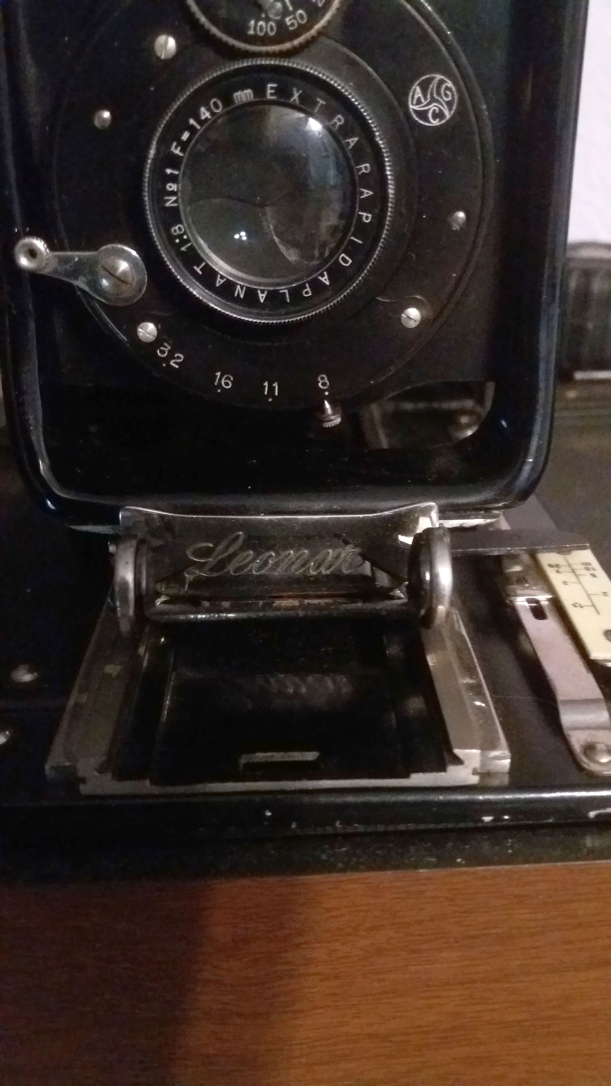 Leider habe ich über Leonar nur gefunden, dass sie von 1910 bis 1964 gebaut wurden, keine Kameramodelle oder ähnliches. Daher hoffe ich, dass ihr mir weiterhelfen könnt ( entschuldigt die grottigen Handybilder ). Die Kamera hat einen doppelten Auszug und eine Libelle neben dem Brillantsucher. Die Optik ist ein Extra Rapid Aplanat mit 1:8 f=140mm. Der AGC Verschluss geht von C B T bis 1/100 .