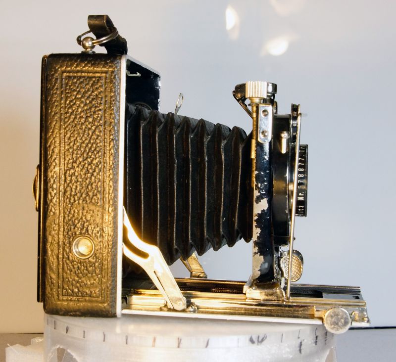 Folie ist übrigens missverständlich, ich weiß nicht was es ist, aber es ist von der Stärke und Flexibilität etwa wie Rollfilm. Alles in allem eine tolle Kamera, meine zweite Ihagee, und bis auf die beschriebenen Dinge prima in Schuss. Falls eine meiner Rollfilmkassetten passt, probiere ich sie vielleicht mal aus.