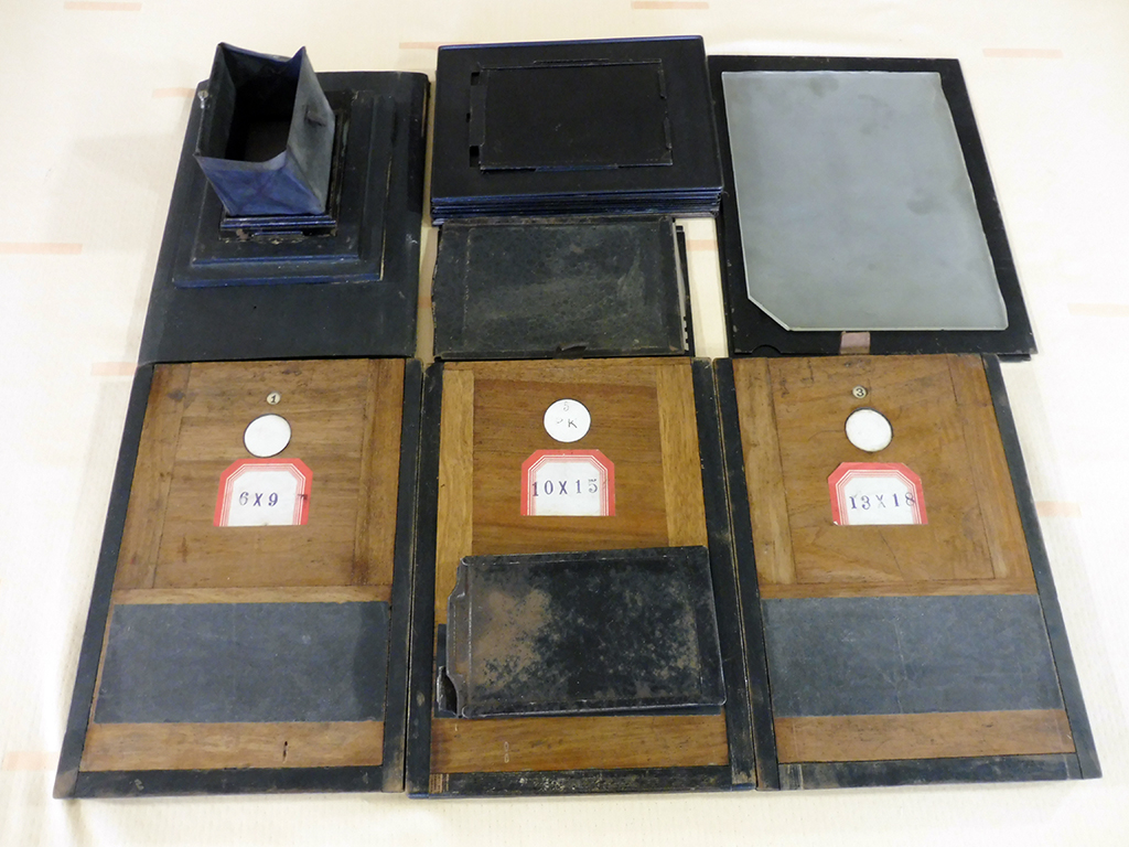 Vor 2 Wochen habe ich auf einem polnischen Antikmarkt die folgende Kamera mit reichlich Zubehör erstanden. Es handelt sich um eine belgische Kamera "L. Van Goitsenhoven" im Format 13 x 18 cm, es kann aber auch das Format 18 x 24 cm verwendet werden, da Mattscheibe und Plattenhalterungen dabei waren. Auf einer (leider nicht mehr im Netz vorhandenen) Seite war eine ähnliche Kamera des gleichen Herstellers beschrieben, jedoch waren dort andere Objektive angegeben. Über den Hersteller habe ich noch den folgenden Link gefunden: https://fomu.atomis.be/index.php/van-goitsenhoven-l;isaar