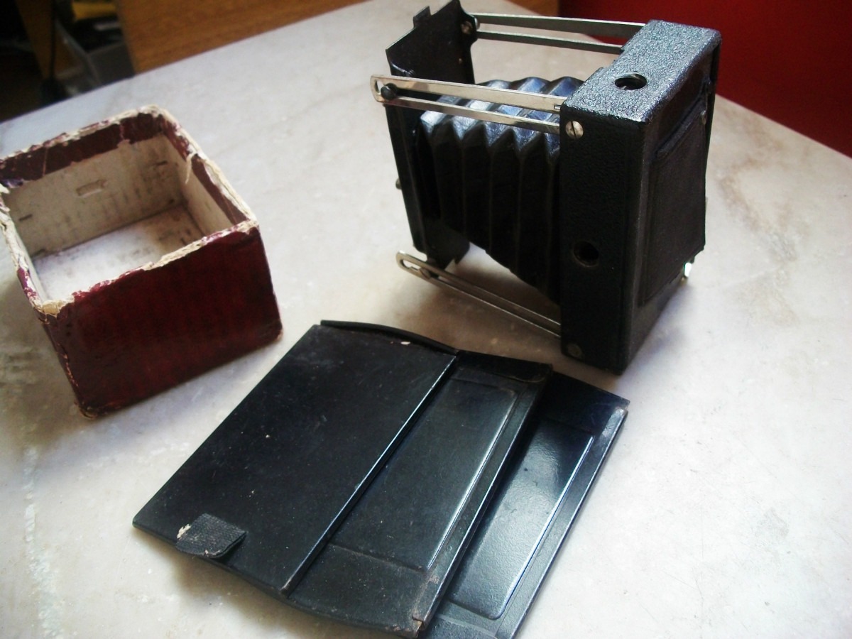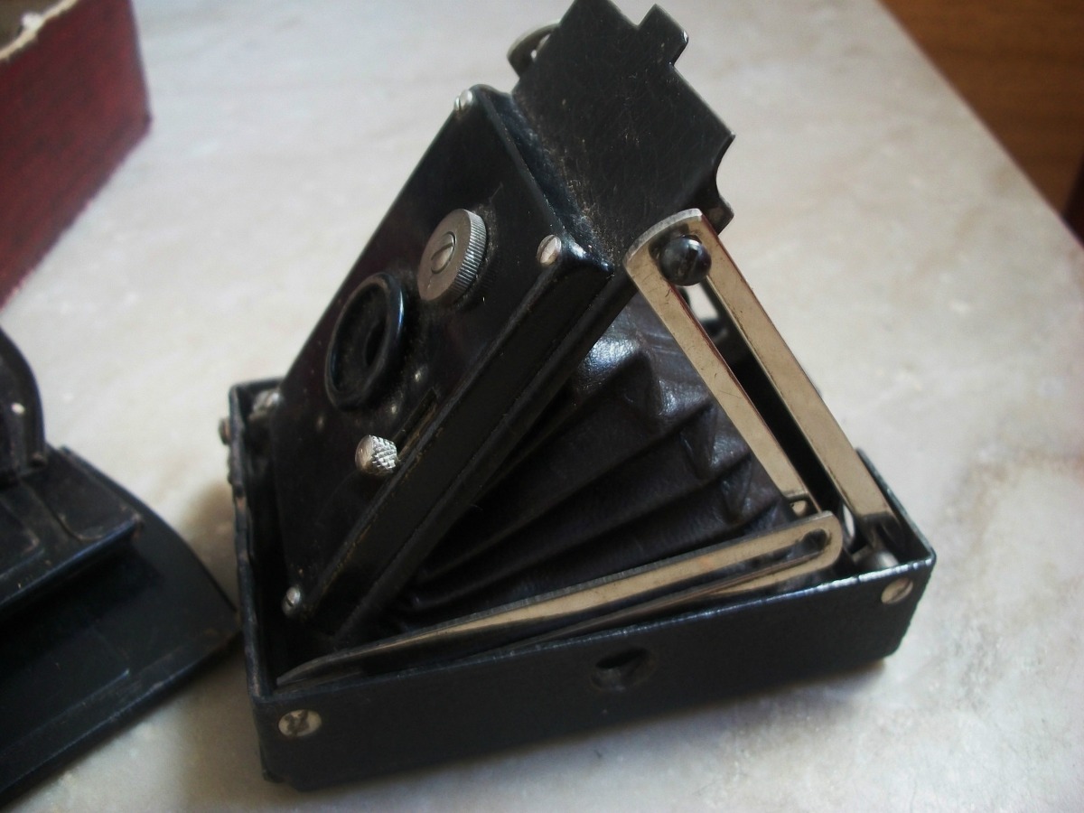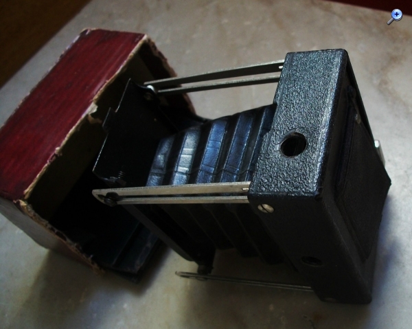 es gab eine große Modell-Breite der Ensignette-Kameras. Mir sind derzeit um 10 Varianten bekannt, auch mit unterschiedlichen Objektiven. Allerdings haben diese Kameras von Houghtons alle gemeinsame Merkmale: An der Frontseite ist eigentlich immer der Firmenhinweis und während der Laufzeit des Patents von 1907 auch eben dieser Patenthinweis zu finden. Auch ist die echte Ensignette feiner strukturiert. Auch die hier gezeigte Spreizen-Konstruktion erscheint mir recht rudimentär zu sein. Diesen Kastenaufsatz an der Frontseite habe ich so noch nicht gesehen. Ich denke derzeit: Das von Dir gezeigte Modell könnte ein plumper Nachbau nach Auslauf des Patents von 1907 sein.