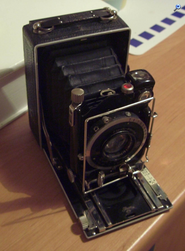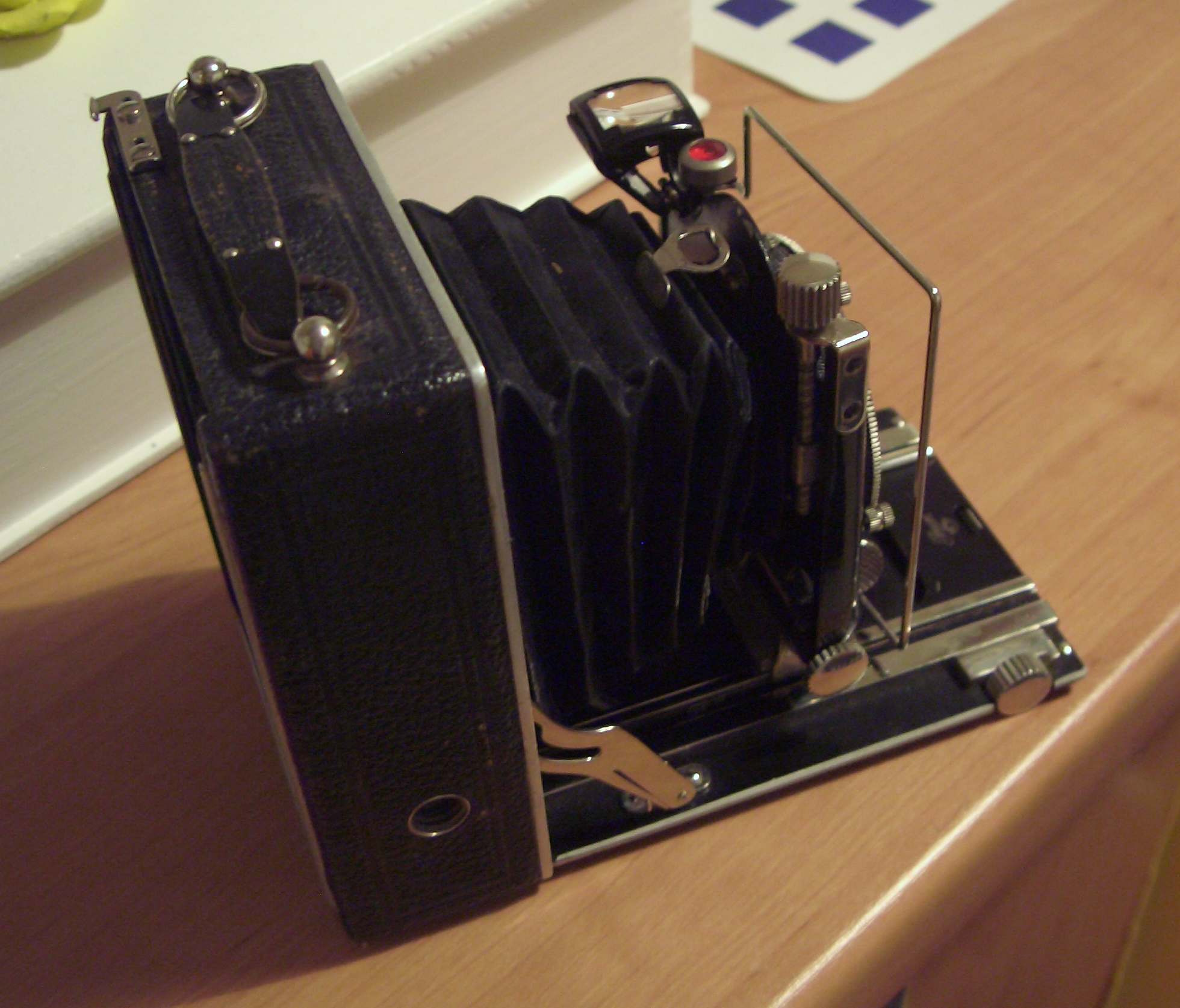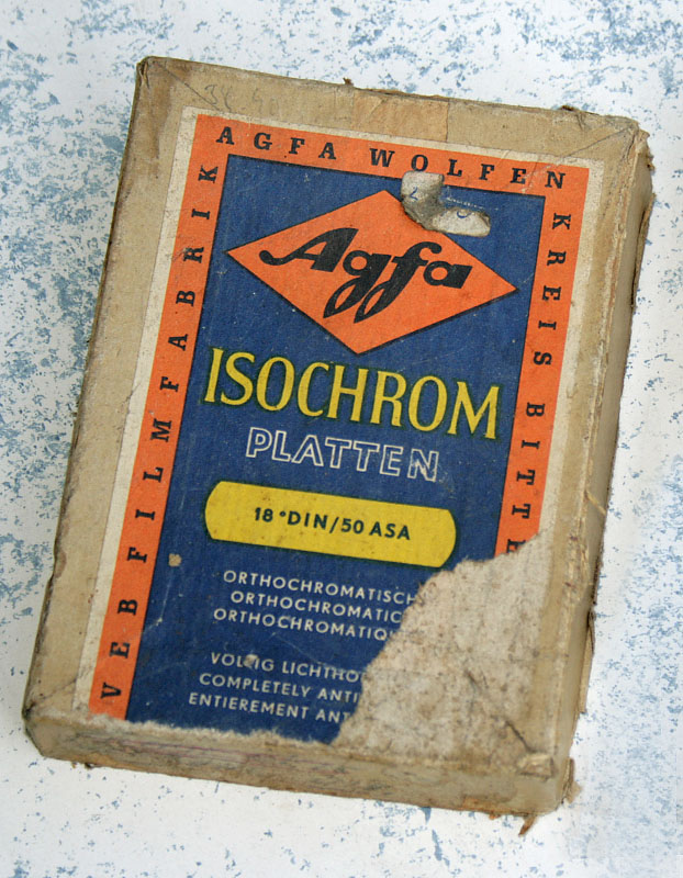Eine schöne Kamera hast du da gefunden. Wenn du die Objektivstandarte bis zum Anschalg vorne herausziehst kannst du auch nach der Entfernungsskala ohne Mattscheibe scharfeinstellen. Die Plattenkassetten dürften leider fehlen! Zur beiliegenden Plattenpackung: Die orthochromatischen 6x9 cm Isochromplatten wurden im AGFA Werk in Wolfen produziert. 1909 gründete Agfa in Wolfen die Filmfabrik ORWO (Original Wolfen) zum Zweck der Film- und Plattenherstellung in der DDR. Die russische Aufschrift auf deiner Plattenpackung weist auf die Sowjetische SAG Photoplenka Filmfabrik Agfa Wolfen hin.
